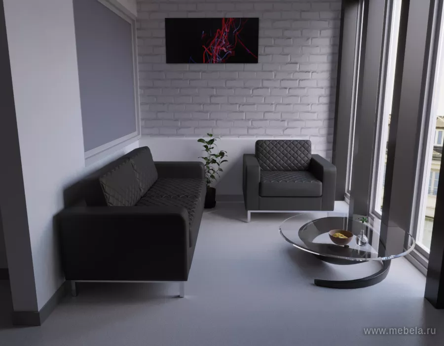 Офисный диван под заказ Барнтхаус полностью оправдывает свое громкое название. При своем минималистическом дизайне и классическом черном цвете он производит эффектное впечатление одной только декоративной деталью. Ромбовидная прошивка подушек делает диван непохожим на другие.