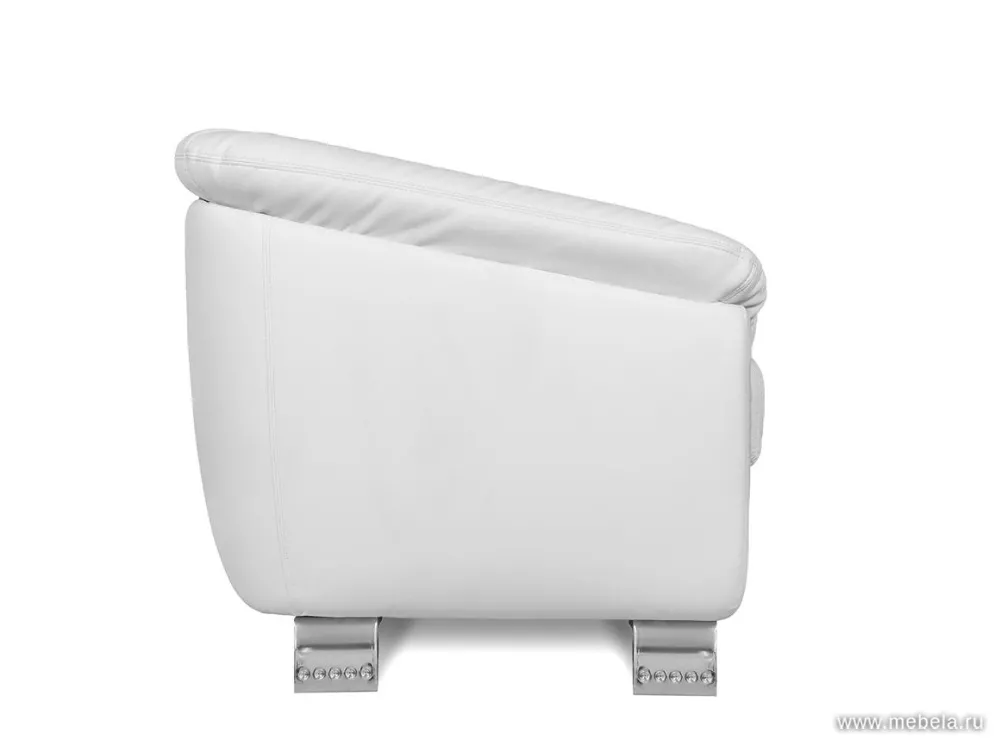 Комбинация белоснежной кожи и необычно изогнутых блестящих опор-ножек придает изделию особое благородство и элегантность. Плавные линии дополнительной накладки на спинку обеспечивают уютную посадку. Накладка проходит под подушками сиденья, создавая экстравагантную форму. Надежные качественные ма...