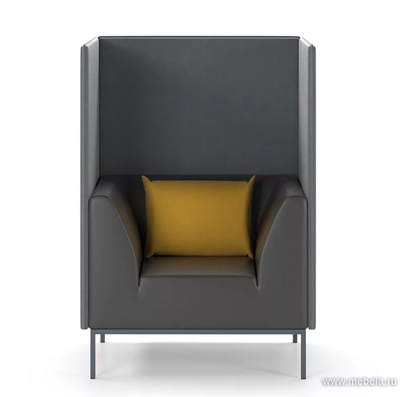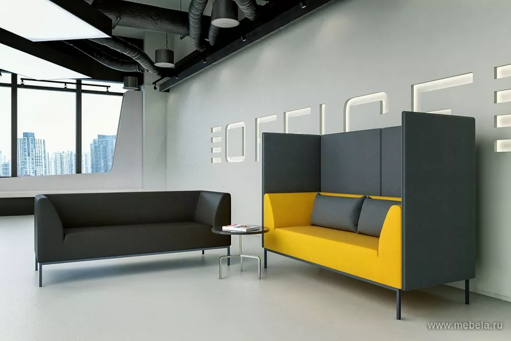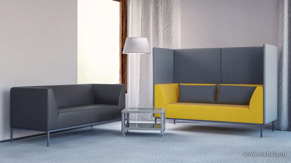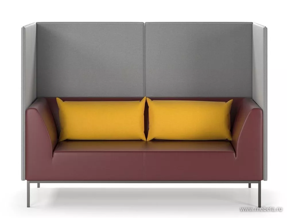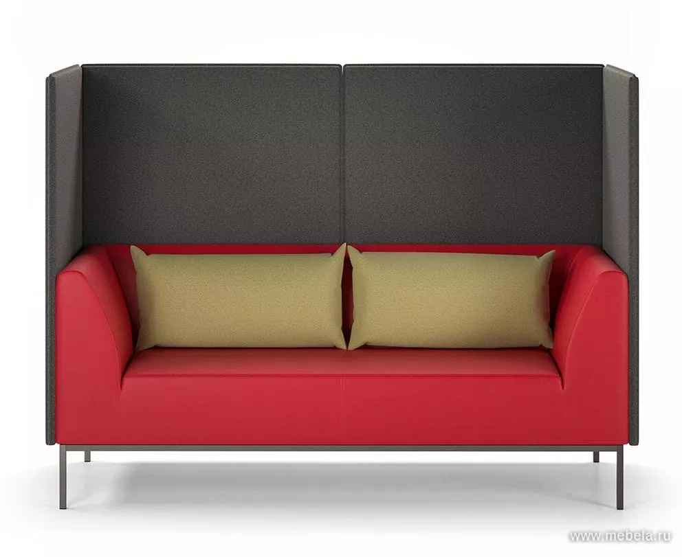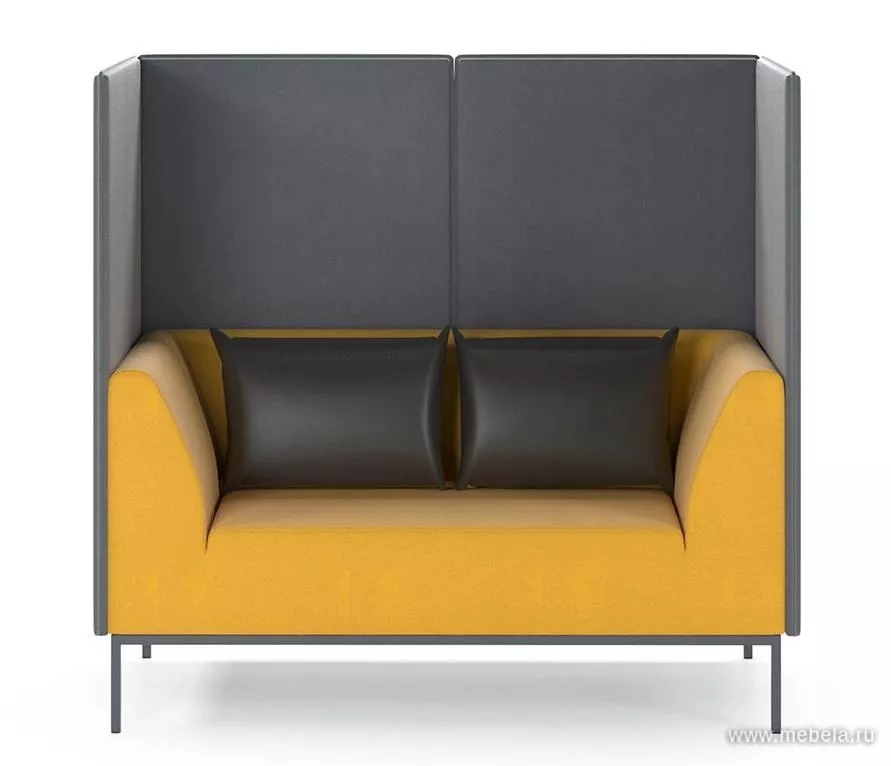 Модель офисного дивана с высокой спинкой и закрытыми боковинами отличается своим минималистичным дизайном и оригинальной контрастной расцветкой. Выбор цветов — по желанию. Высокие спинки из звукопоглощающего материала обеспечивают уют и приватность зоны ожидания или приемной. Дополняют диван две мягкие подушки.
