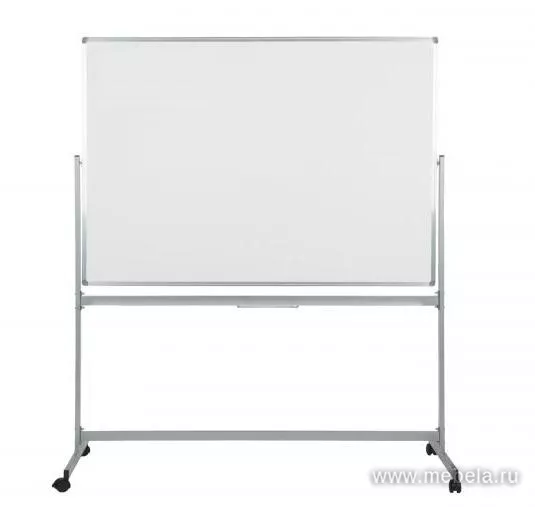 Доска магнитно-маркерная 100x120 см, вращающаяся на 360 градусов, на роликах, с лаковым покрытием. Высота с учетом подставки: 1830 мм, имеет возможность фиксироваться в 5-ти положениях.