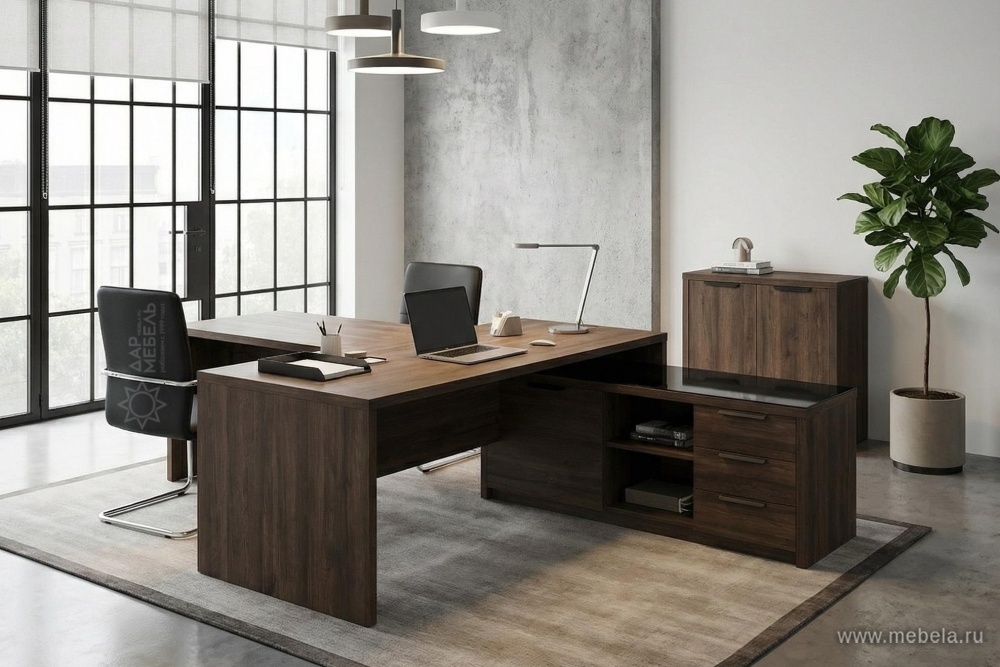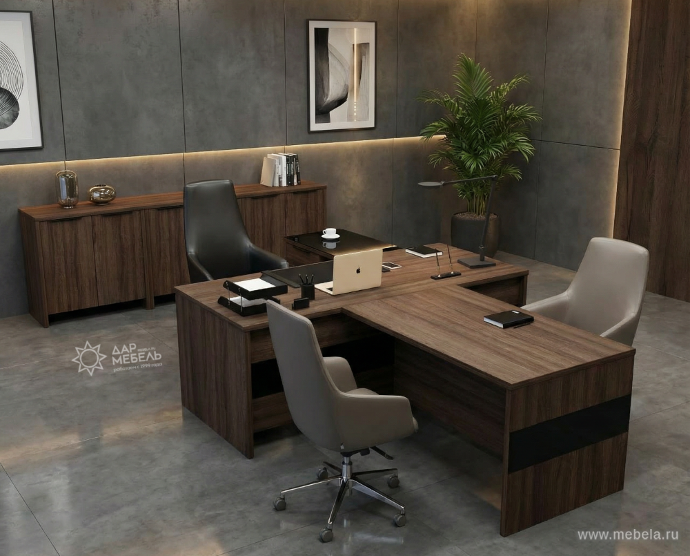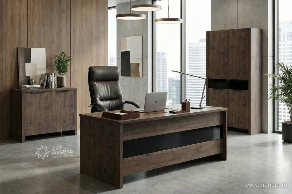 Комплект для кабинетов “Акцент” в цвете дуб апрель полностью оправдывает свое название. Его дизайн построен на контрасте цветов и материалов. Комбинирование ДСП и тонированного стекла создает неповторимый образ в вашем офисе, обладая при этом высочайшей функциональностью.