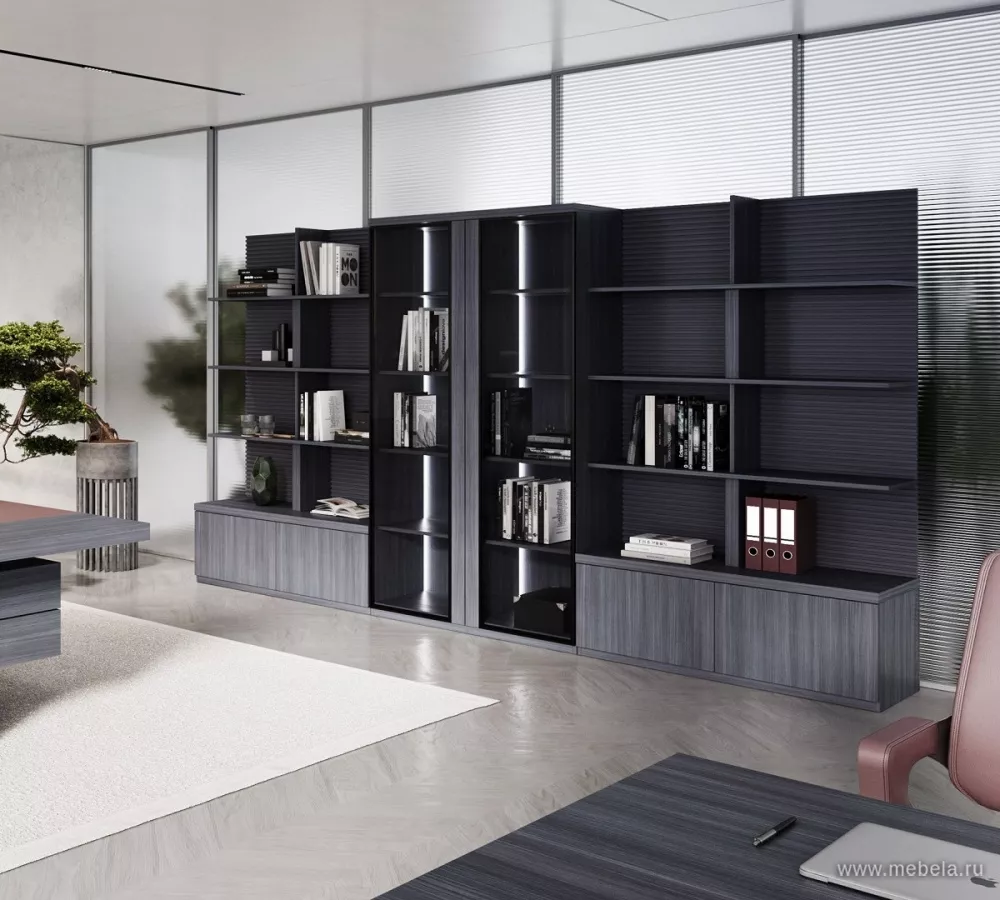 Офисный шкаф со стеклом с полками и подсветкой