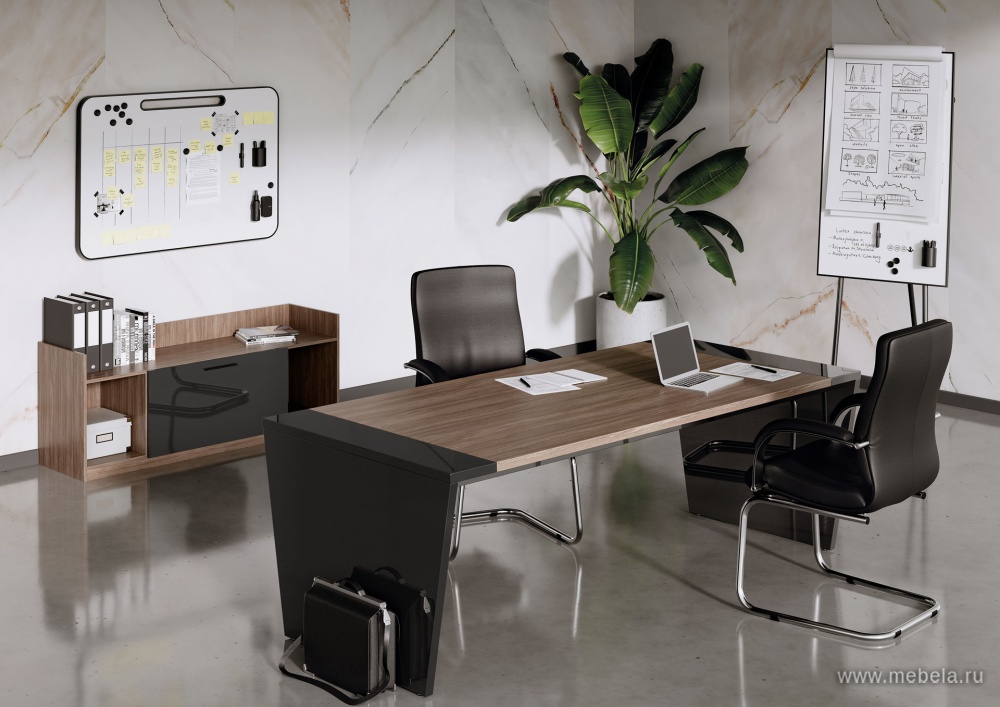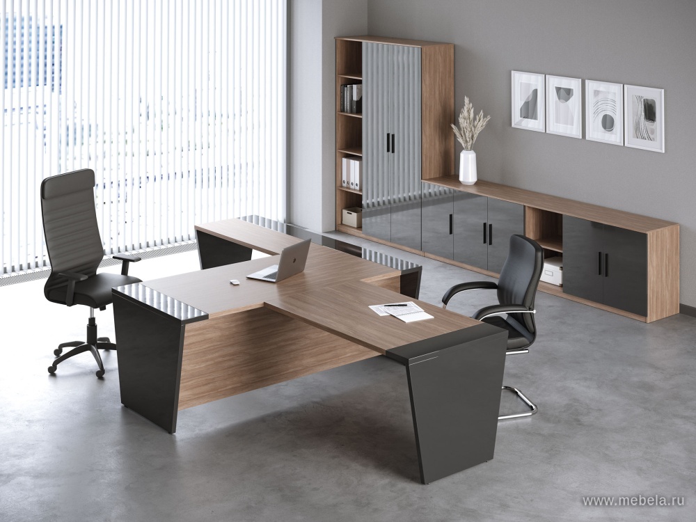 Отечественные производители предлагают выбор разных размеров и композиционным исполнением: столы руководителя, для переговоров, брифинг-приставки, правосторонние и левосторонние приставные столы, тумбы приставные и передвижные, шкафы для бумаг и гардеробы. Каркас всех изделий, задних стенок из Л...