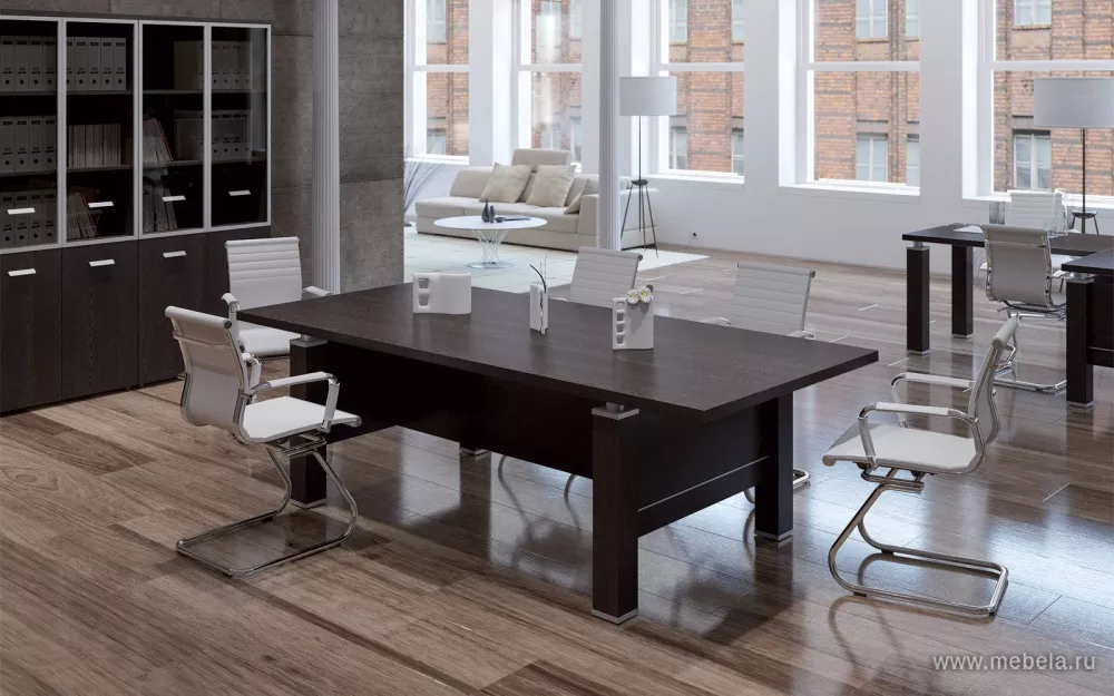В кабинете “Бонд” успешно сочетается классический стиль с элементами Хай-Тека и яркие темно-светлые контрасты. Это позволяет одновременно добиться солидного, но современного внешнего вида для вашего офиса. Малое количество декоративных элементов не перегружает интерьер, поэтому такая мебель подойдет для любого офиса.