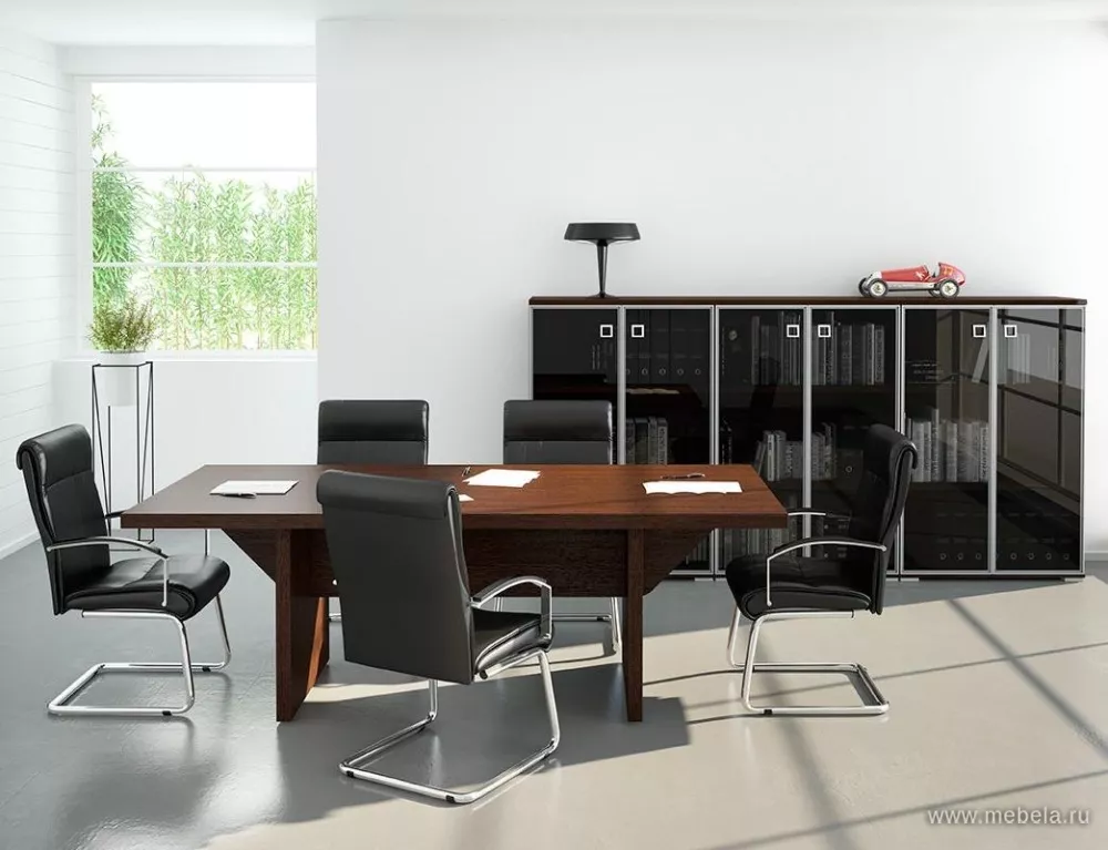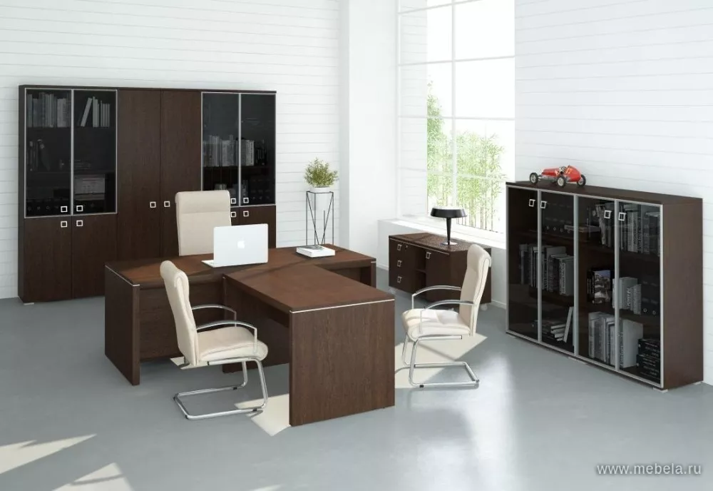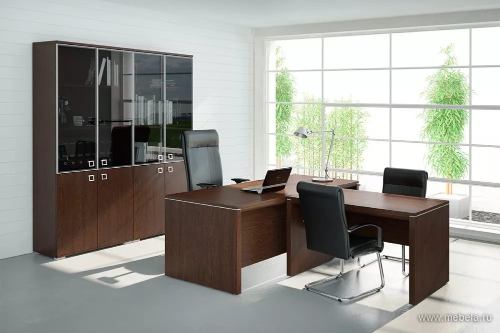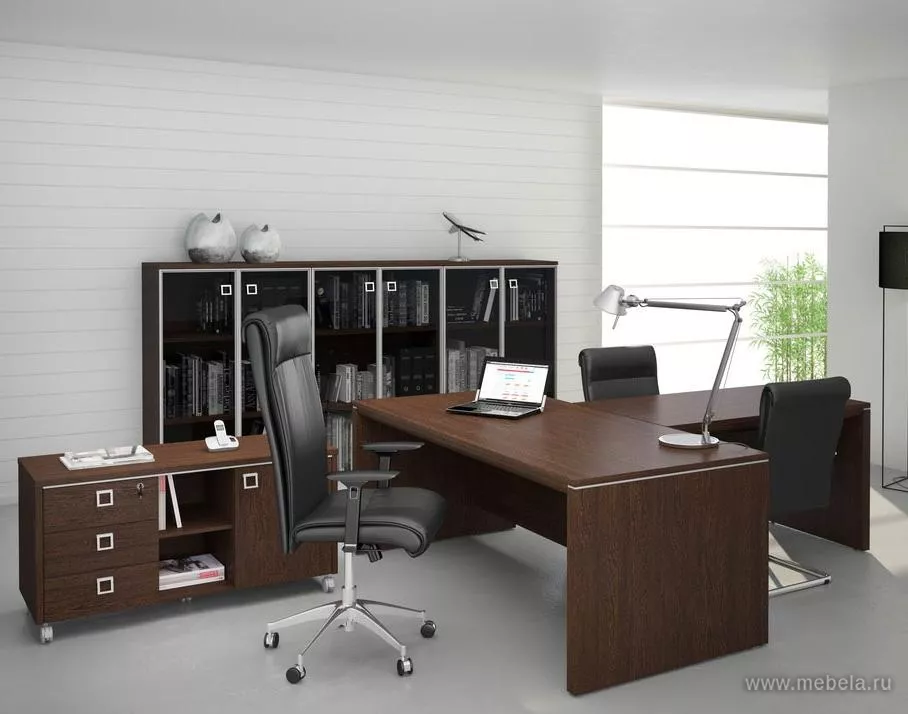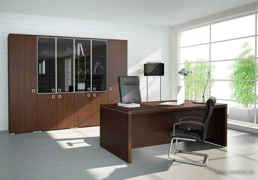 Несмотря на минималистический стиль, кабинеты руководителя Cosmo выглядят очень эффектно и отлично подойдут современному руководителю. Их простые формы дополнены необычными цветовыми акцентами в виде белых проставок под столешницами, что делает коллекцию уникальной.