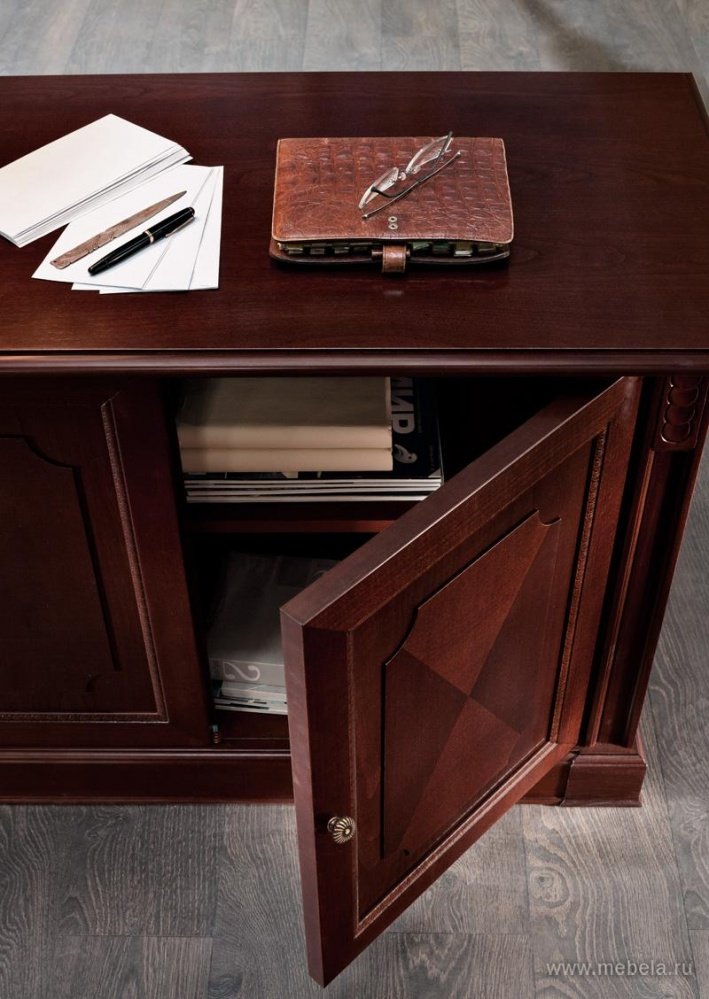 Все декоративные элементы мебели для кабинетов руководителей Doge представляют собой ручную работу итальянских мастеров. Комплект безупречен во всем вплоть до нежных кисточек-брелоков на ключах от ящиков стола.
