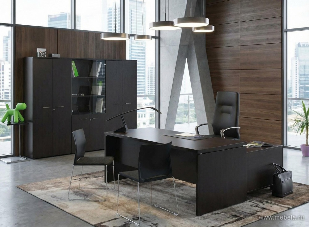 Если вы привыкли выделяться из общей серой массы, то мебель для кабинетов Fermo отлично поможет это сделать. Блестящие развернутые ножки столов, волнистая геометрия полок в открытых шкафах и еще множество дизайнерских приемов прекращают простую офисную мебель Fermo в произведение современного искусства.