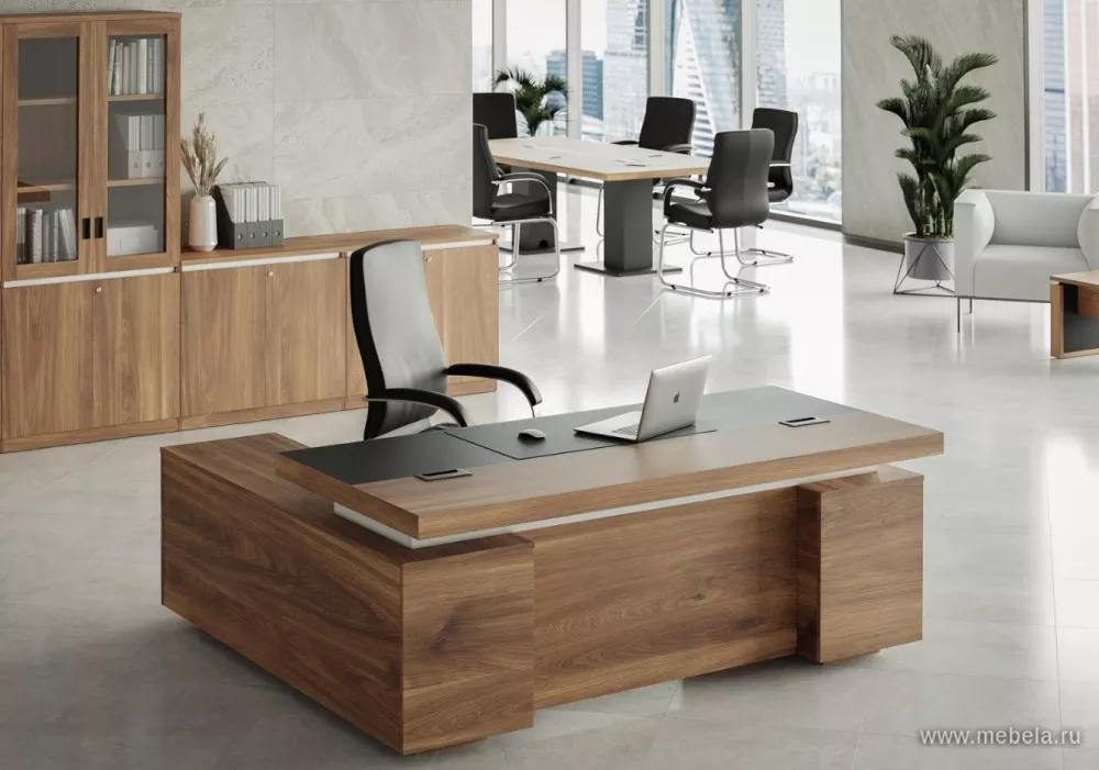 Строгие монументальные колонны столов, массивный шпон натурального ореха, вычурность форм – создать образцовый офис высокого статуса с мебелью для кабинетов “Ливерпуль" получится без труда. Свою респектабельность комплект дополняет изяществом светлых вставок под столешницами, работающими в качестве разгрузочных элементов...