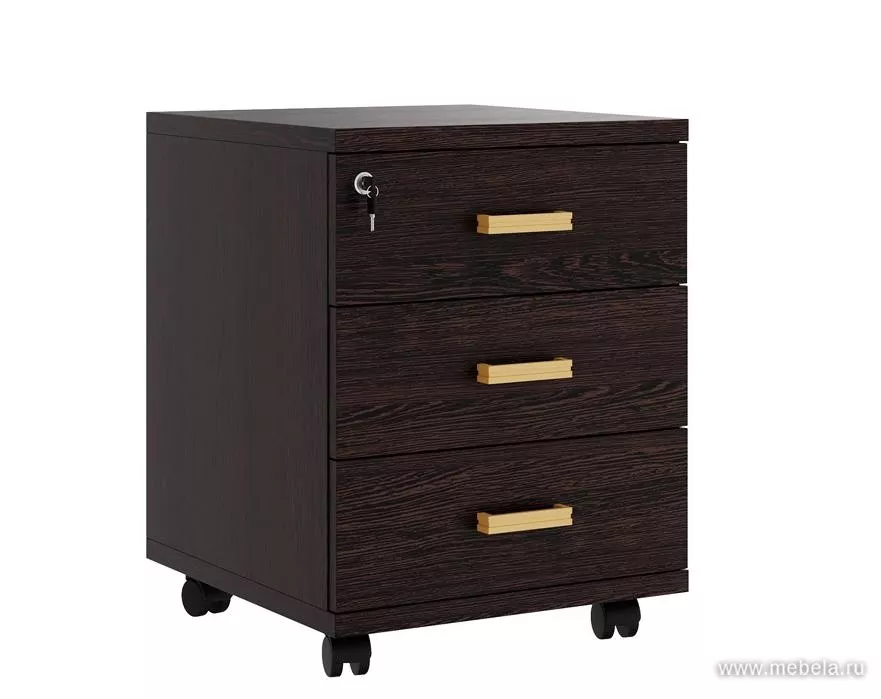 Мобильная офисная тумба с колёсиками и замком, 3 ящика