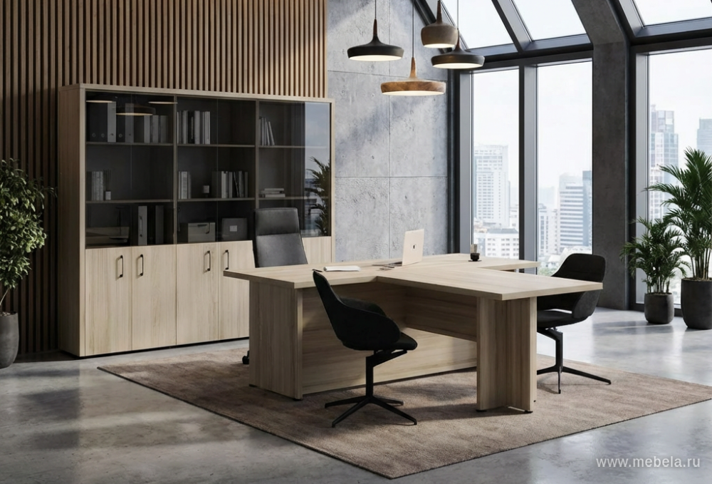 Обставить кабинет руководителя недорого и солидно стало возможным благодаря комплекту офисной мебели “Приоритет“. Массивные столешницы и декоративные панели достоверно имитируют настоящее дерево, являясь при этом ламинированным ДСП. Благородно выглядящий цвет панелей мебели придает комплекту еще больше статуса.