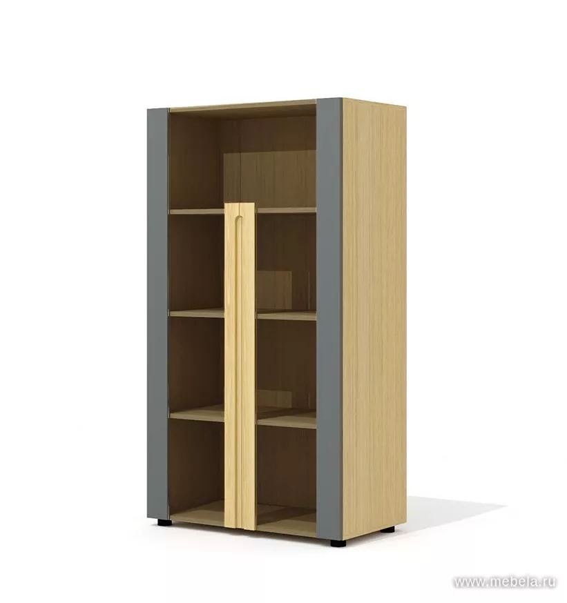 Высокий стеллаж со стеклянными дверьми и боксом
