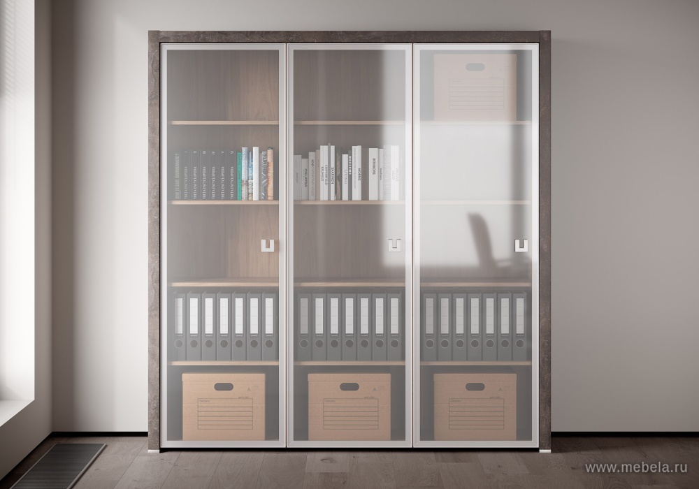 Шкаф офисный для бумаг со стеклом в алюминиевой раме