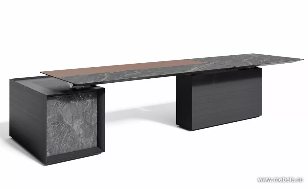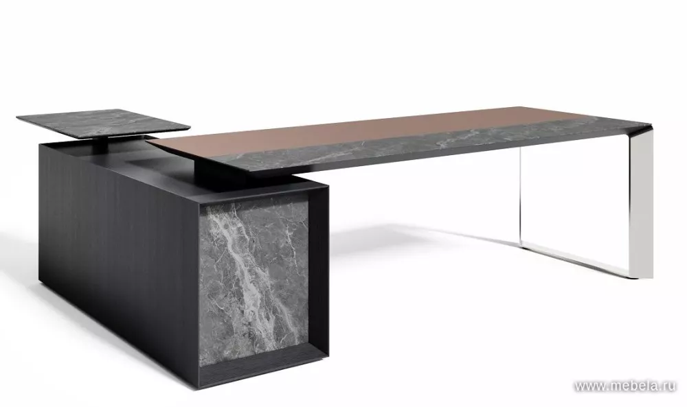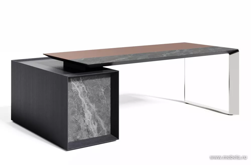 В сердце кабинета находится стол руководителя с массивной столешницей толщиной 50 мм, выполненной из прочного rock board* и дополненной стильной кожаной накладкой. Его надежная опора из стали с гальваническим покрытием обеспечивает устойчивость и долговечность. Функциональная опорная тумба, ...