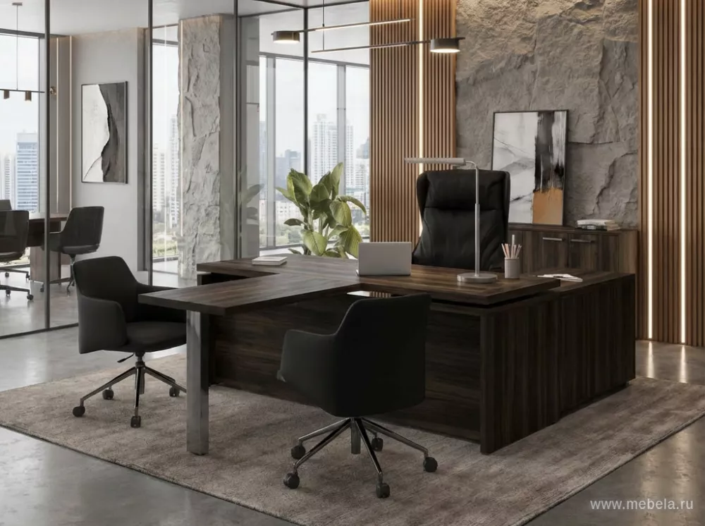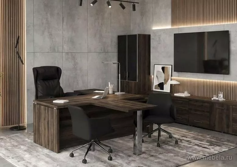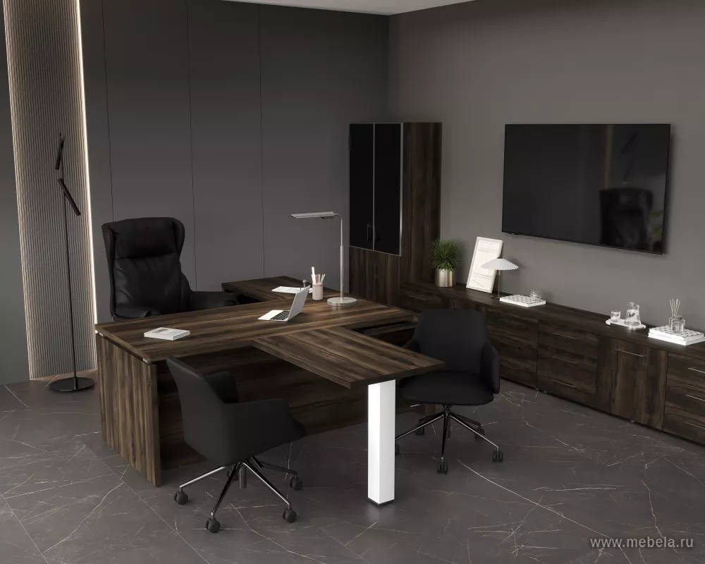 Насыщенный кофейный цвет кабинета руководителя Yalta Дуб мали преобразит скучный офисный интерьер и сделает его богатым и респектабельным. Кроме необычного цвета дуб мали, эта модель может похвастаться стильным и динамичным декором, отлично подходящим современным компаниям.