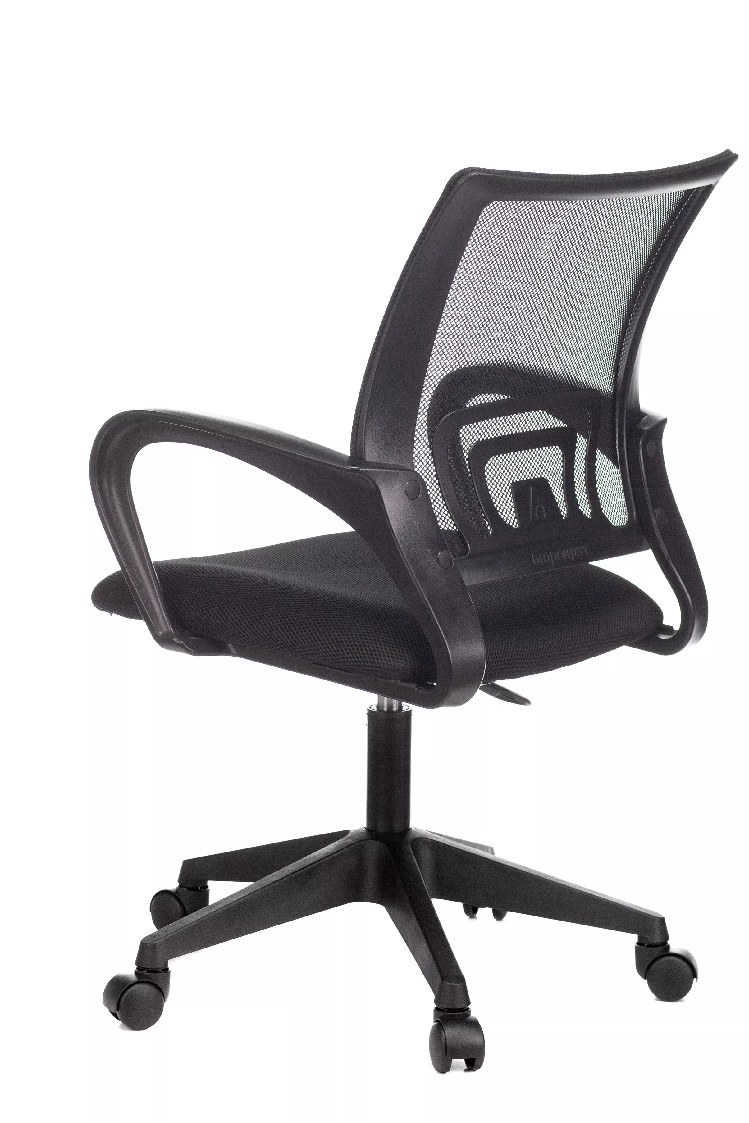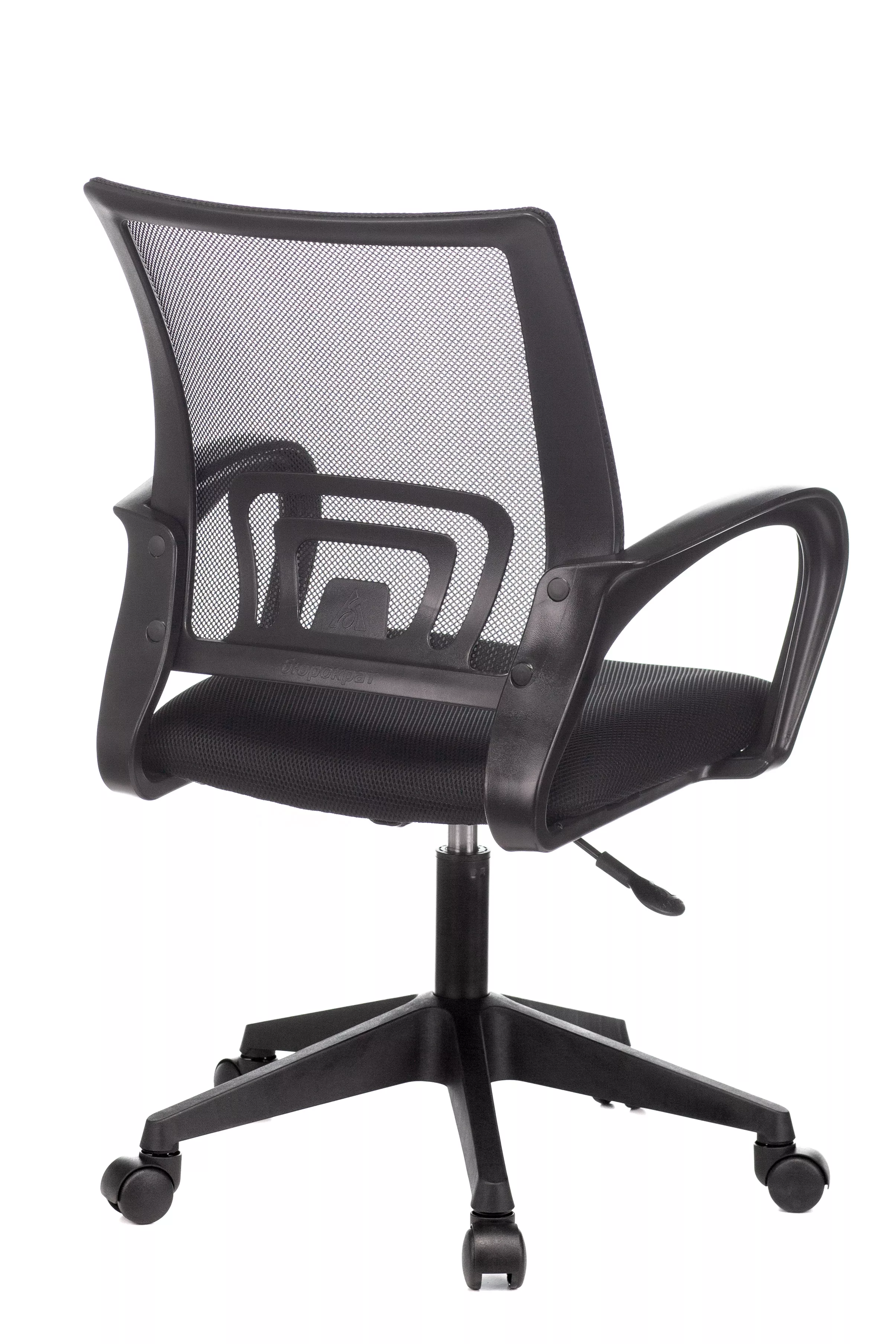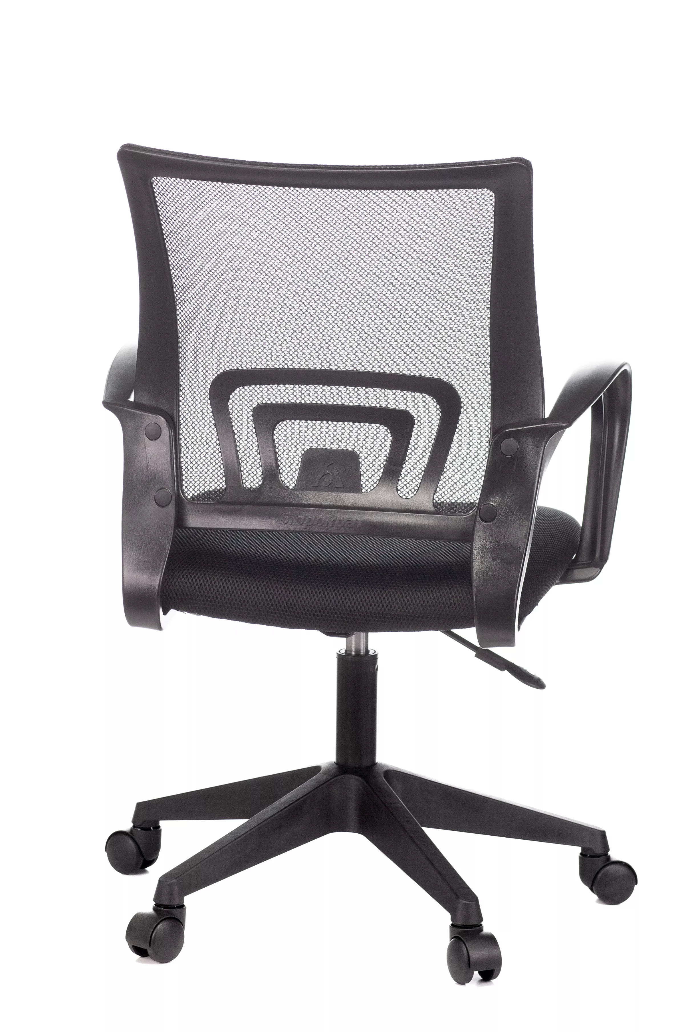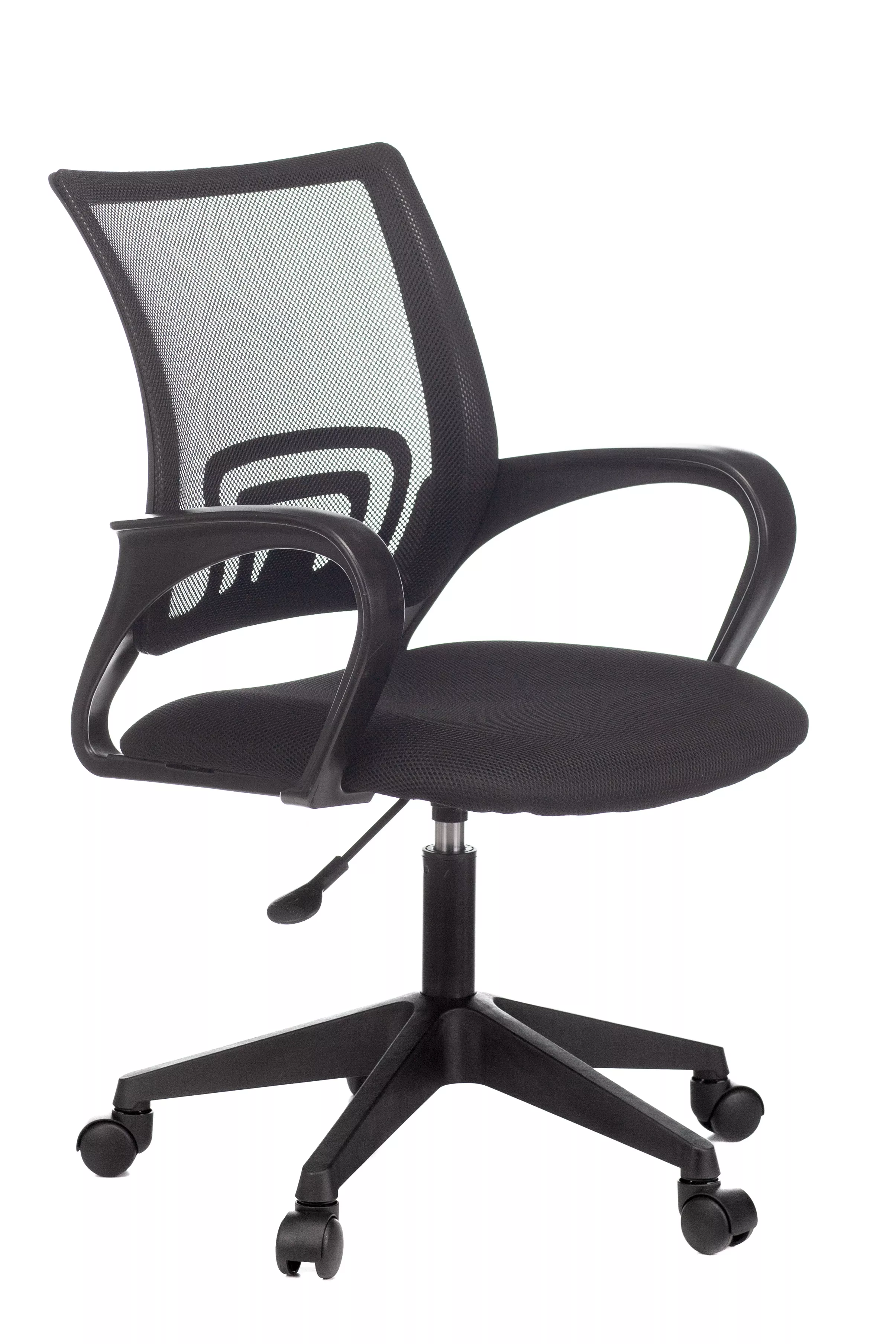 Ткань черного цвета, которой обтянуто сидение кресла, отличается своей прочностью и износостойкостью.Пятилучевая крестовина изготовлена из прочного пластика. В сочетании с поворотными колесиками, она позволяет креслу легко и бесшумно передвигаться по любому напольному покрытию. Ограничения - вес более 120 кг.