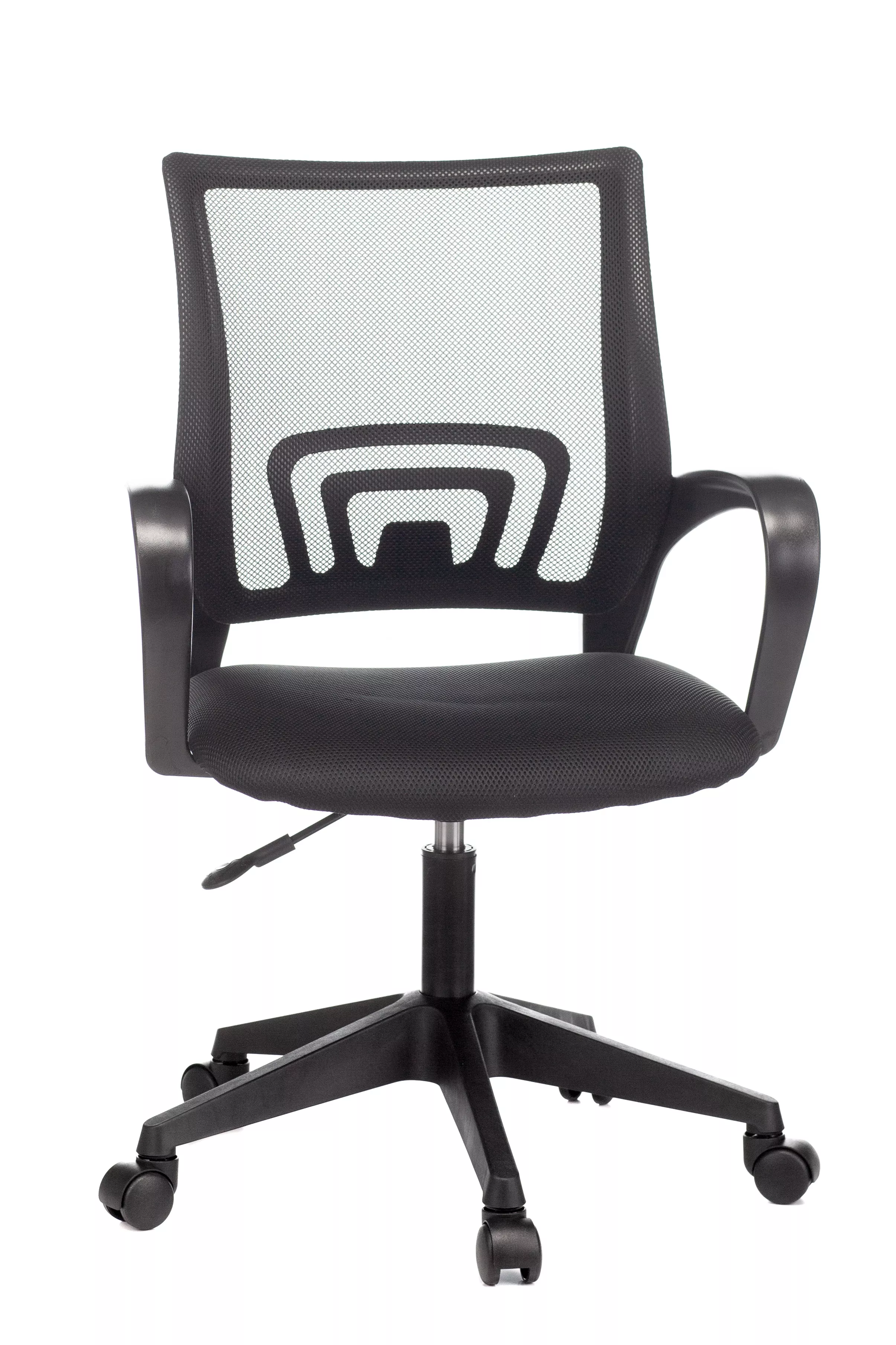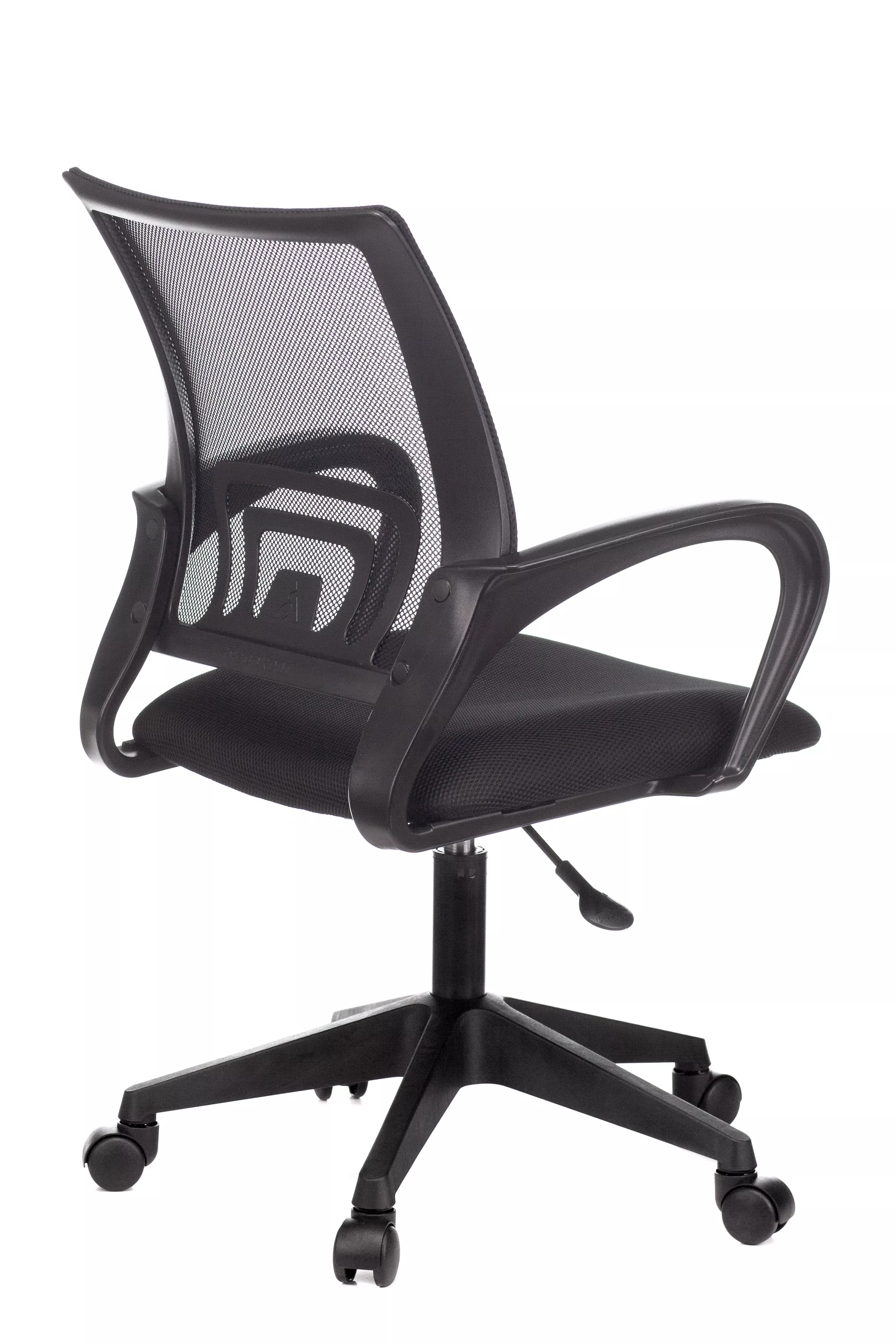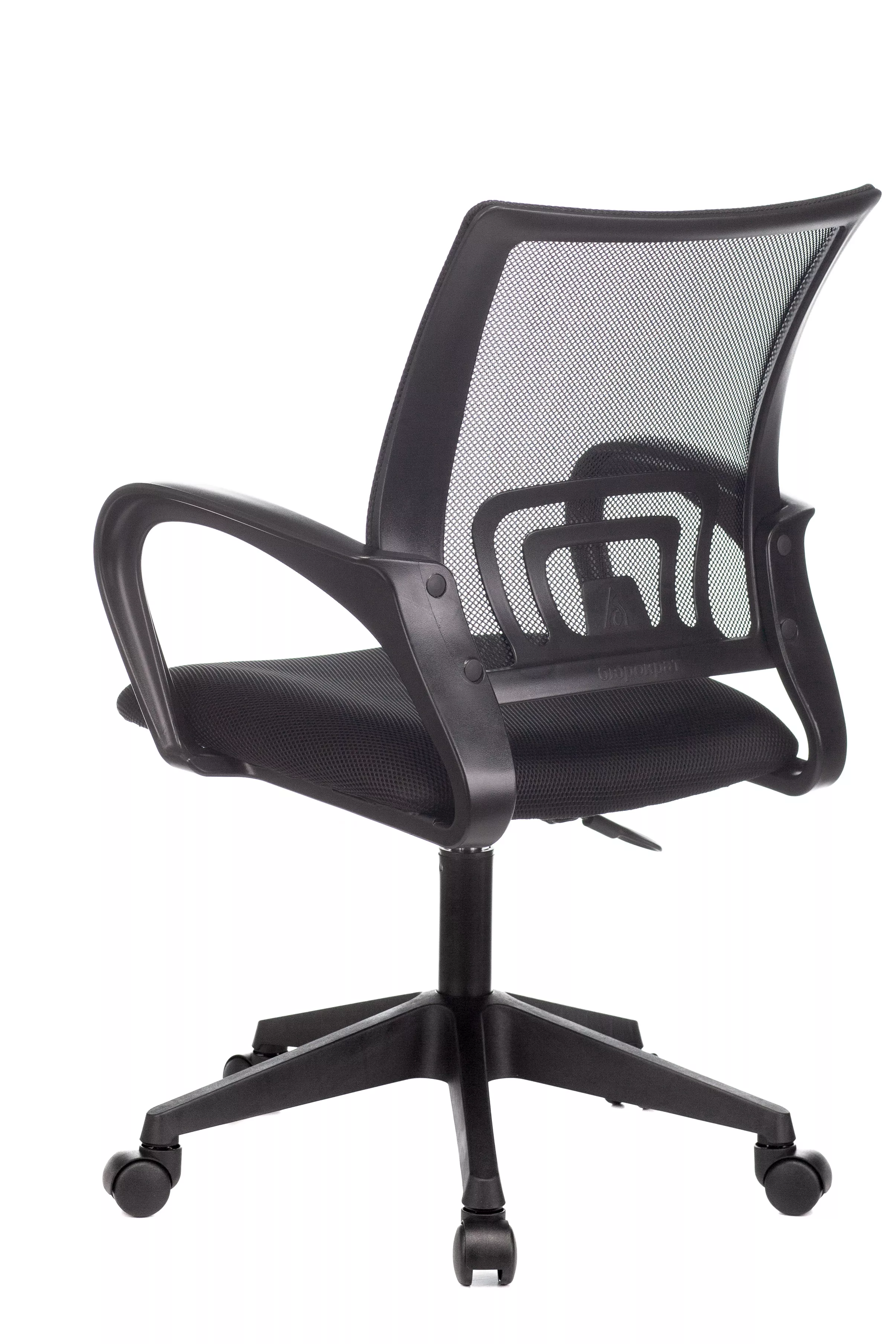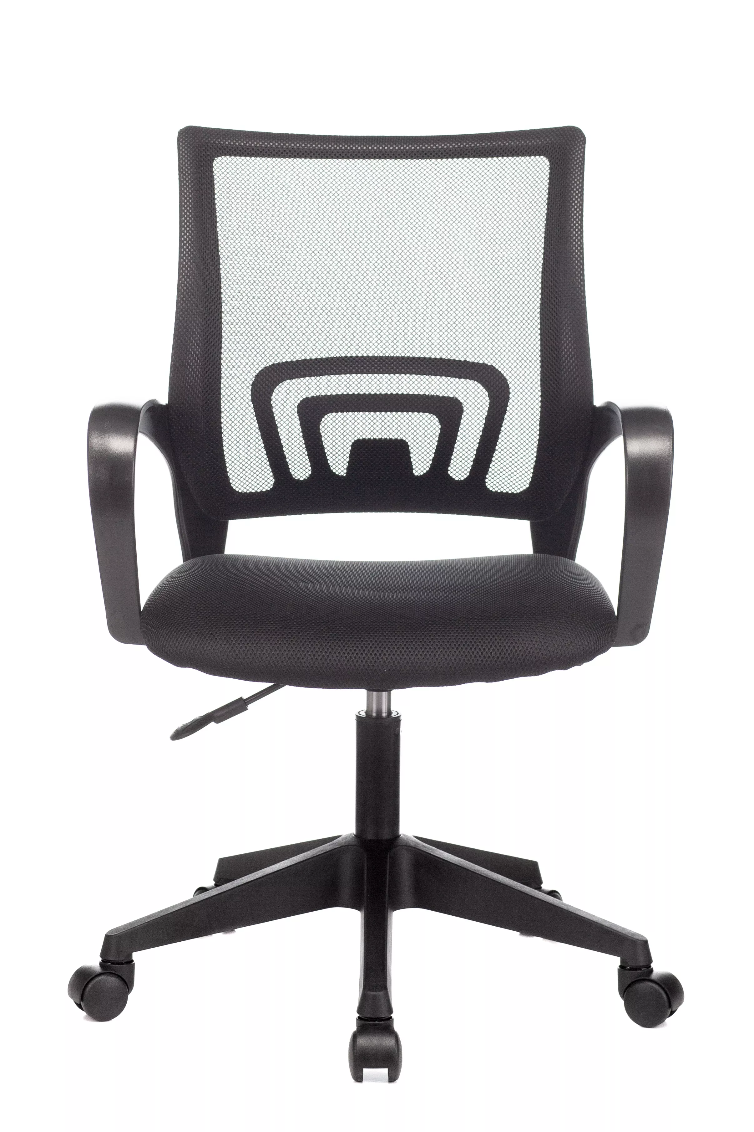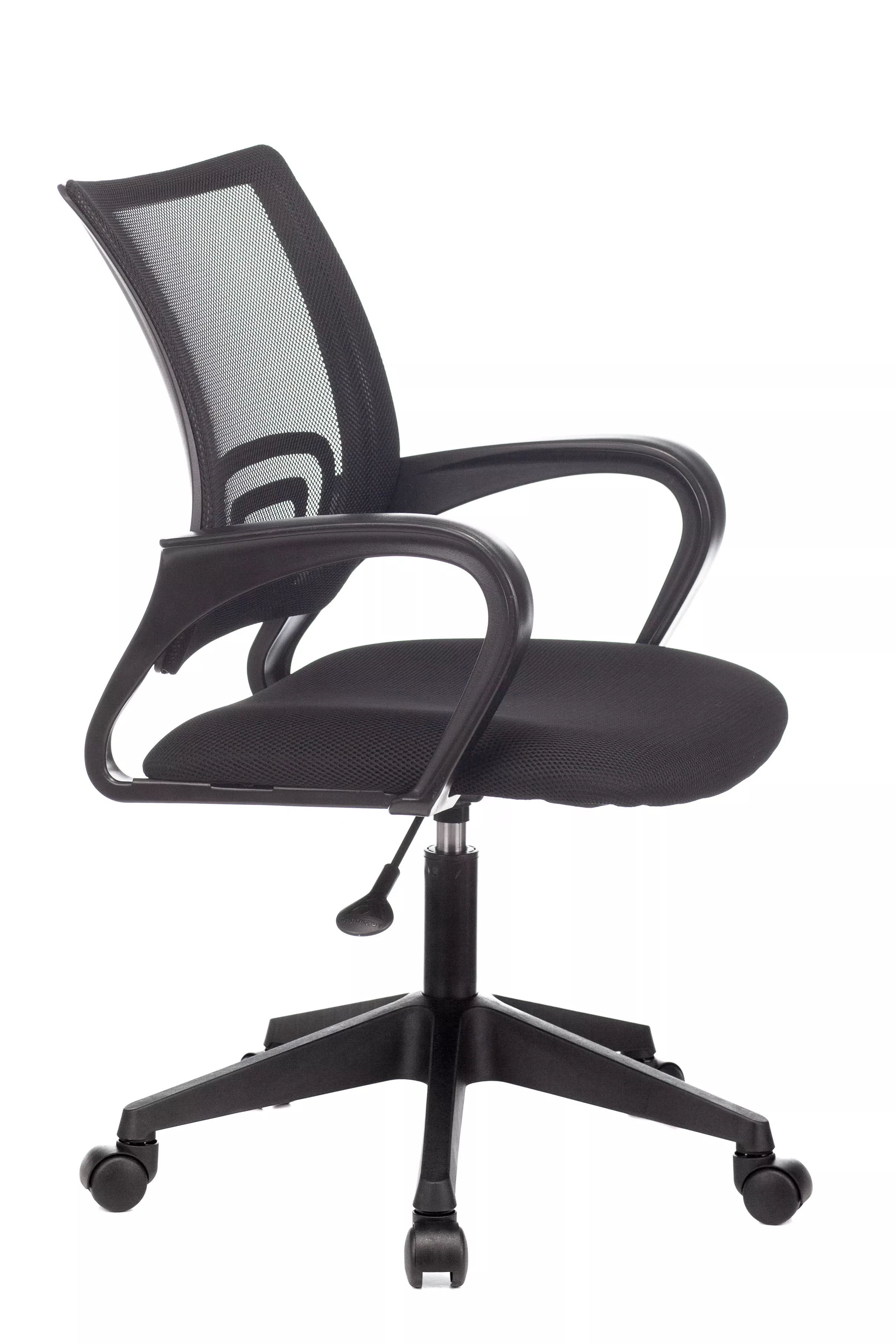 Ткань черного цвета, которой обтянуто сидение кресла, отличается своей прочностью и износостойкостью.Пятилучевая крестовина изготовлена из прочного пластика. В сочетании с поворотными колесиками, она позволяет креслу легко и бесшумно передвигаться по любому напольному покрытию. Ограничения - вес более 120 кг.