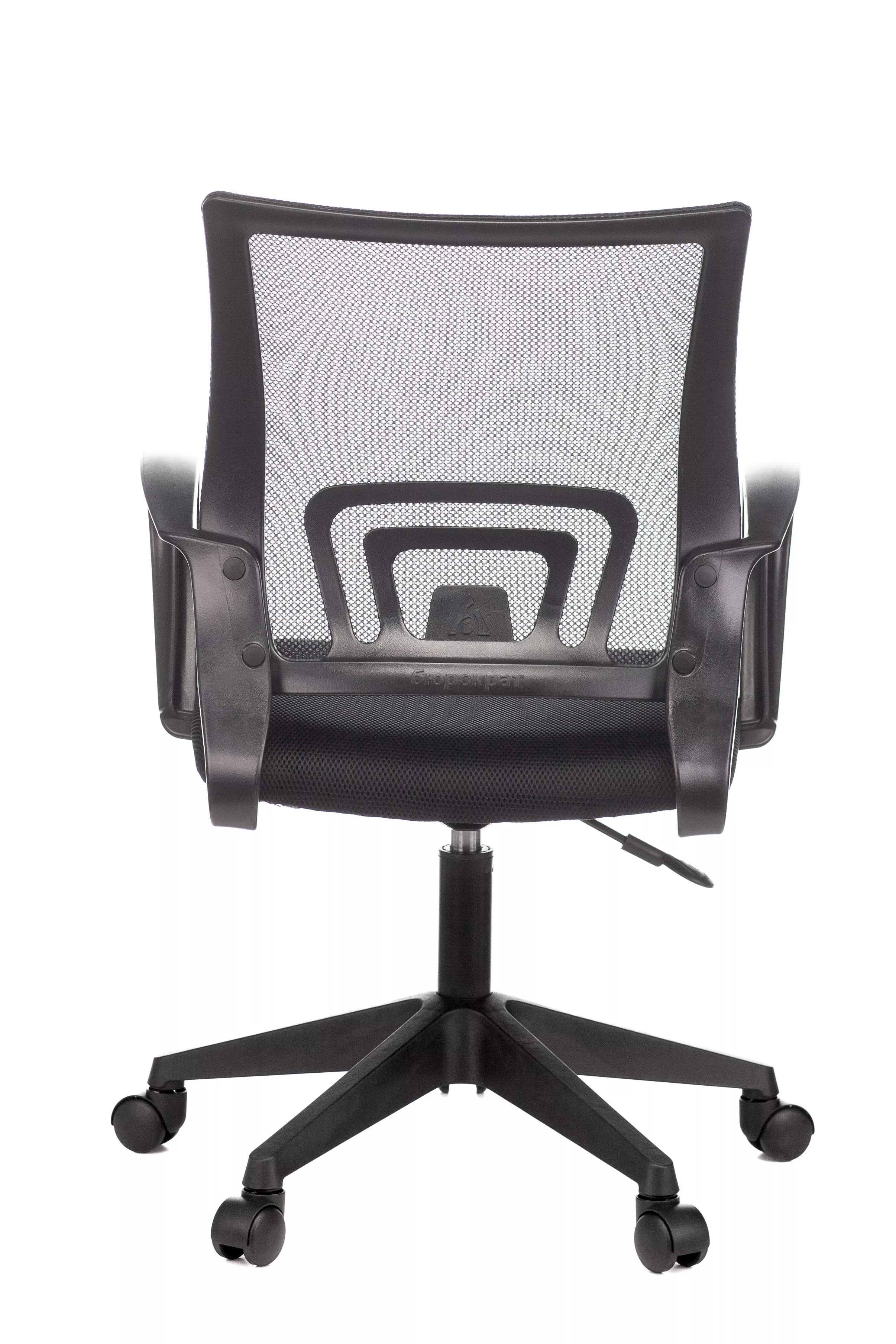 Ткань черного цвета, которой обтянуто сидение кресла, отличается своей прочностью и износостойкостью.Пятилучевая крестовина изготовлена из прочного пластика. В сочетании с поворотными колесиками, она позволяет креслу легко и бесшумно передвигаться по любому напольному покрытию. Ограничения - вес...