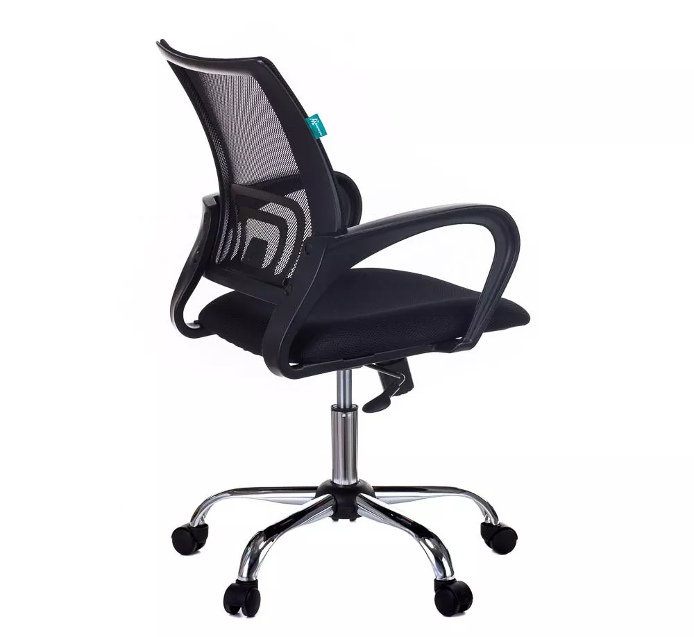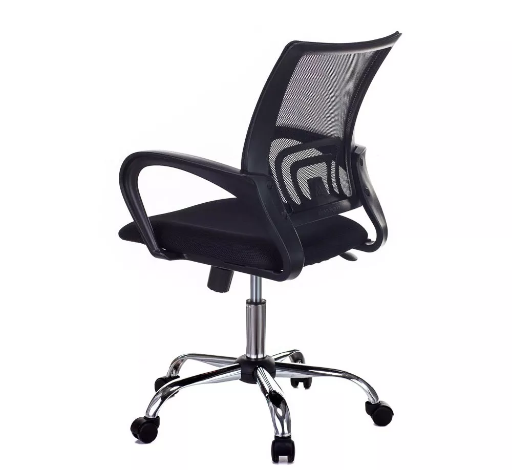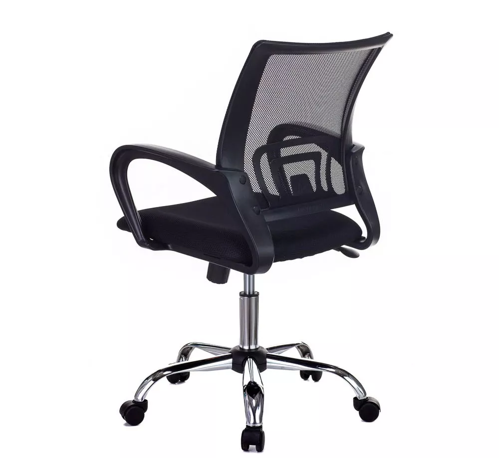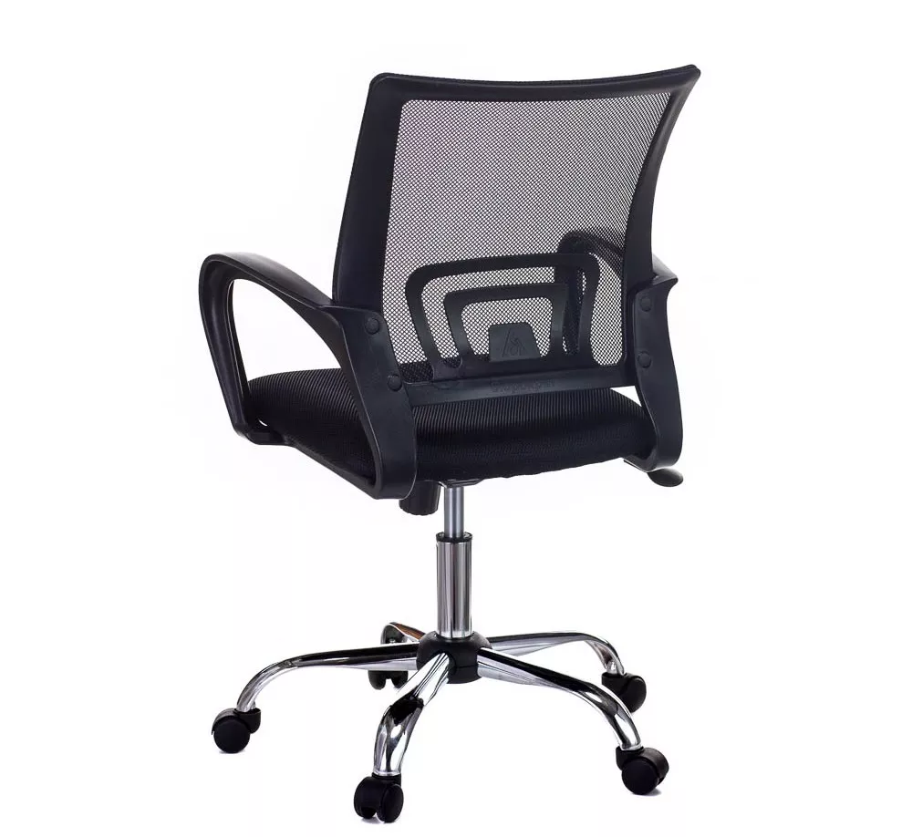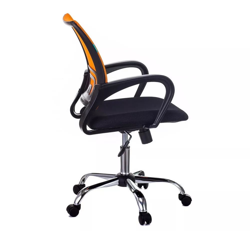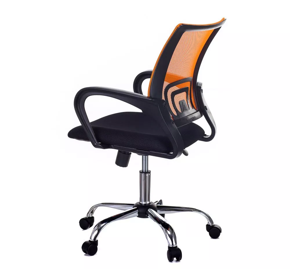 Хромированные элементы кресла выглядят стильно в любом интерьере. Для обивки сидения использована ткань, устойчивая к растяжению, истиранию. В лаконичный дизайн изделия прекрасно вписываются пластиковые подлокотники, которые будут очень удобными для владельца кресла. Хромированная пятилучевая крестовина с поворотными колесиками делает