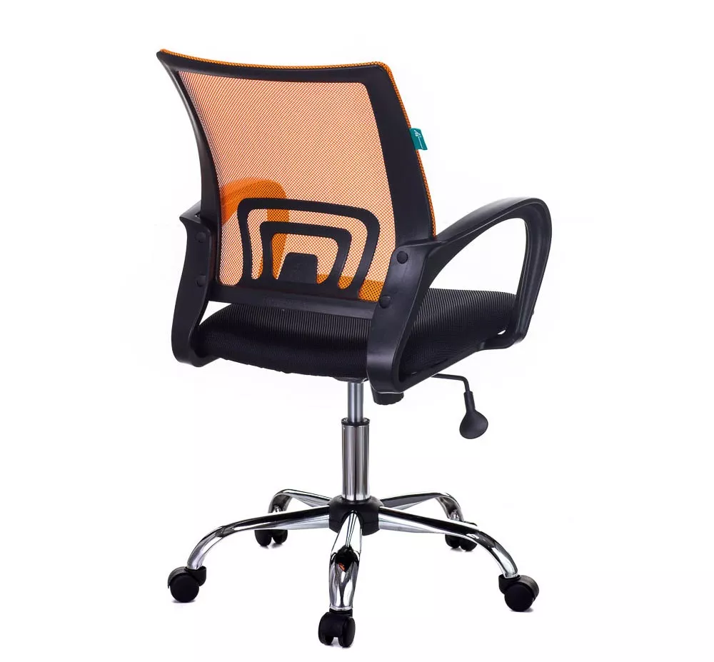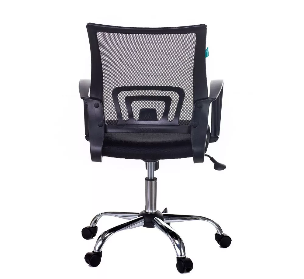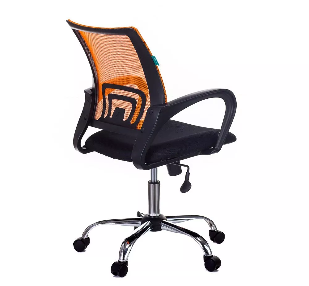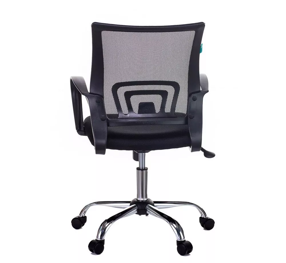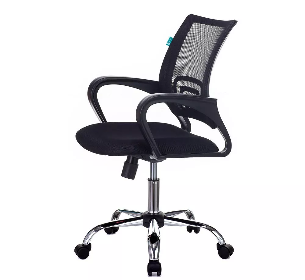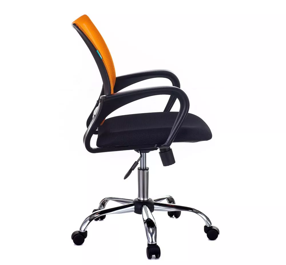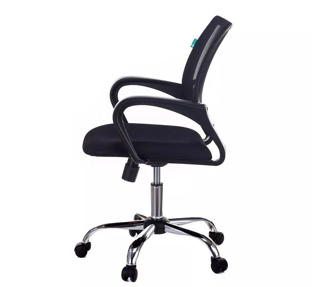 Хромированные элементы кресла выглядят стильно в любом интерьере. Для обивки сидения использована ткань, устойчивая к растяжению, истиранию. В лаконичный дизайн изделия прекрасно вписываются пластиковые подлокотники, которые будут очень удобными для владельца кресла. Хромированная пятилучевая крестовина с поворотными колесиками делает