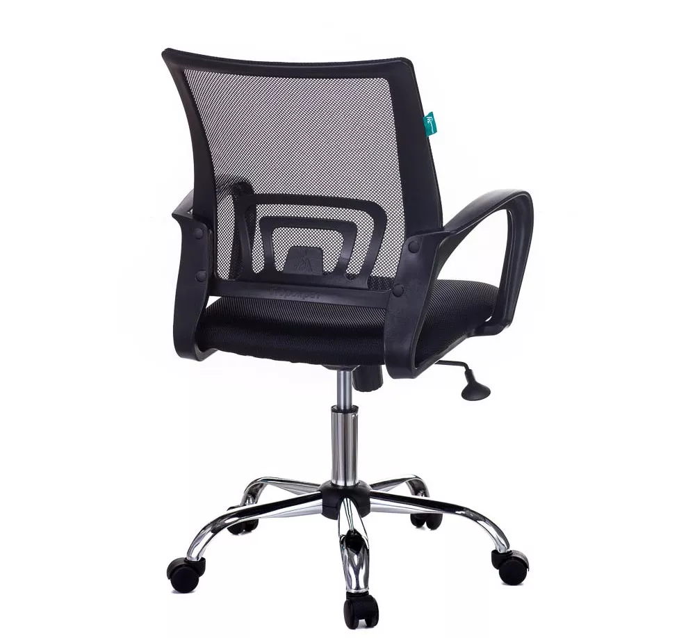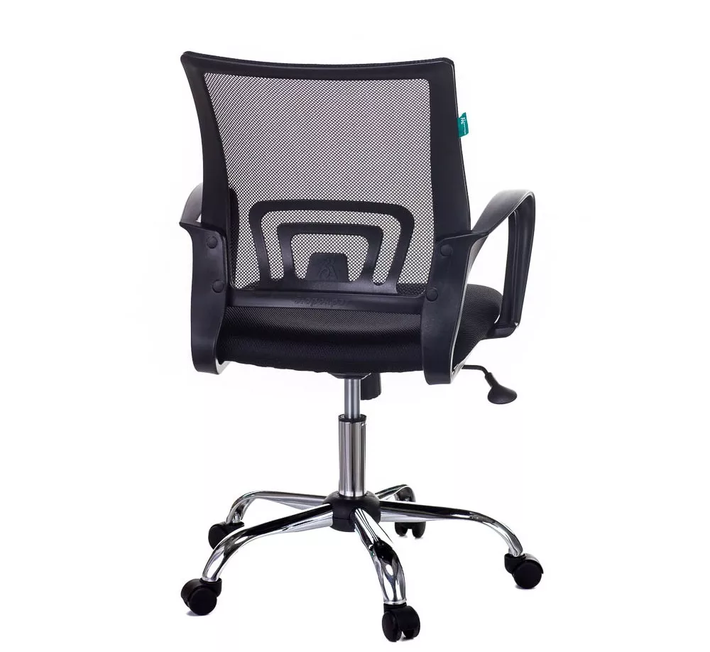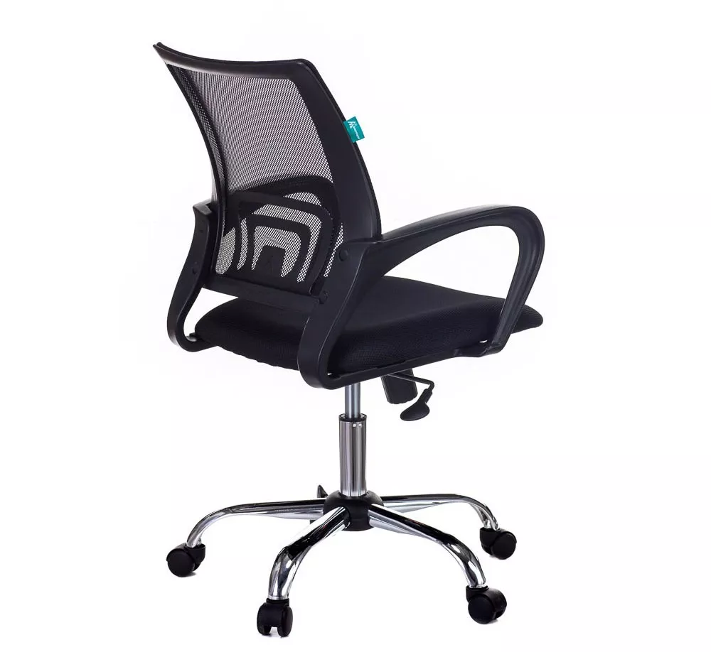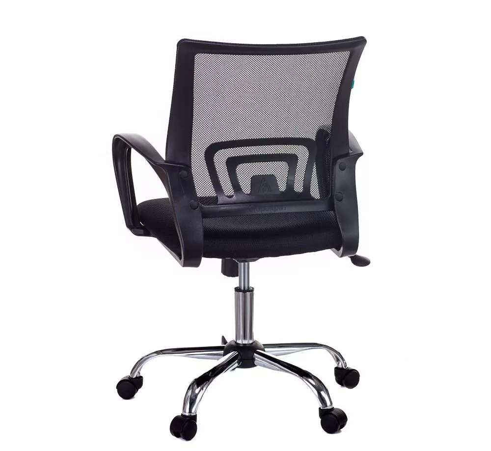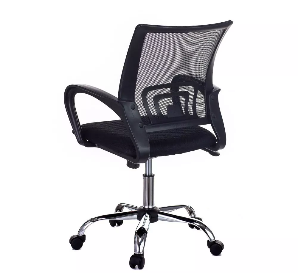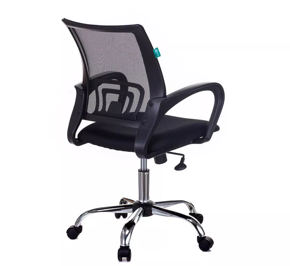 Хромированные элементы кресла выглядят стильно в любом интерьере. Для обивки сидения использована ткань, устойчивая к растяжению, истиранию. В лаконичный дизайн изделия прекрасно вписываются пластиковые подлокотники, которые будут очень удобными для владельца кресла. Хромированная пятилучевая крестовина с поворотными колесиками делает
