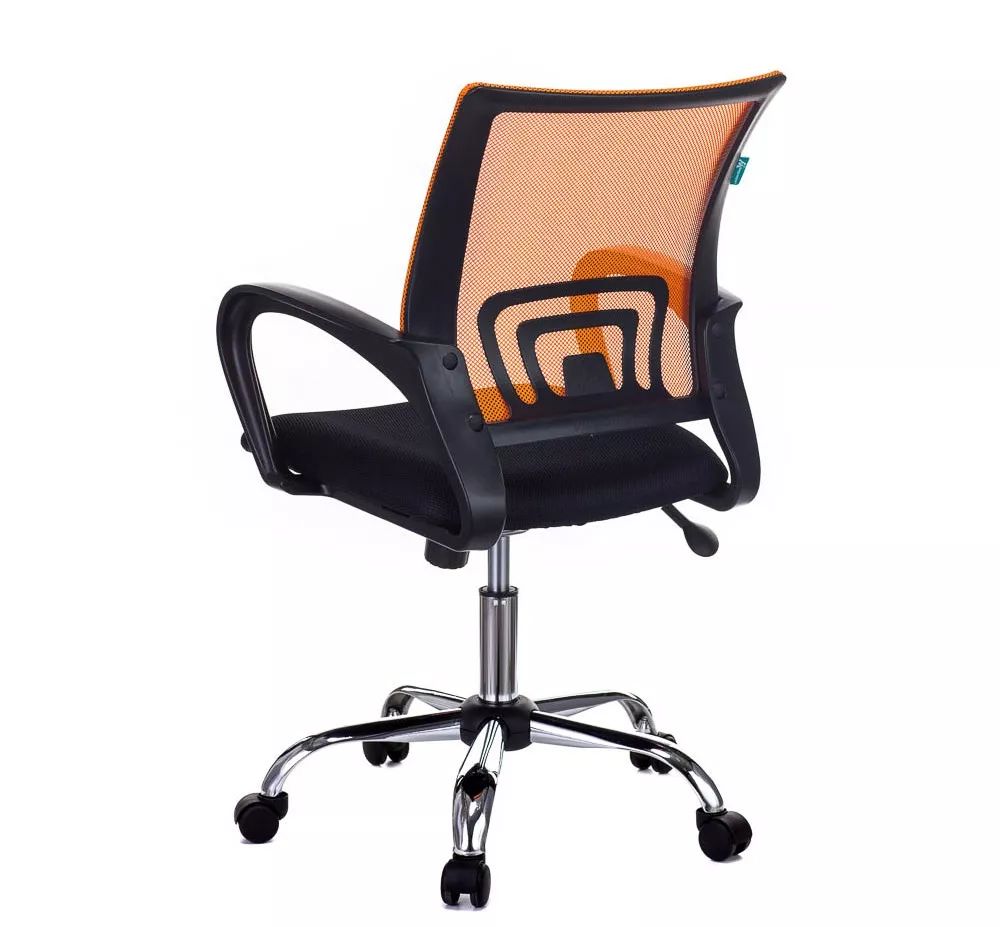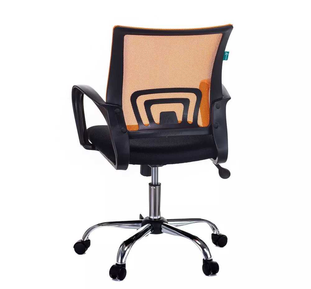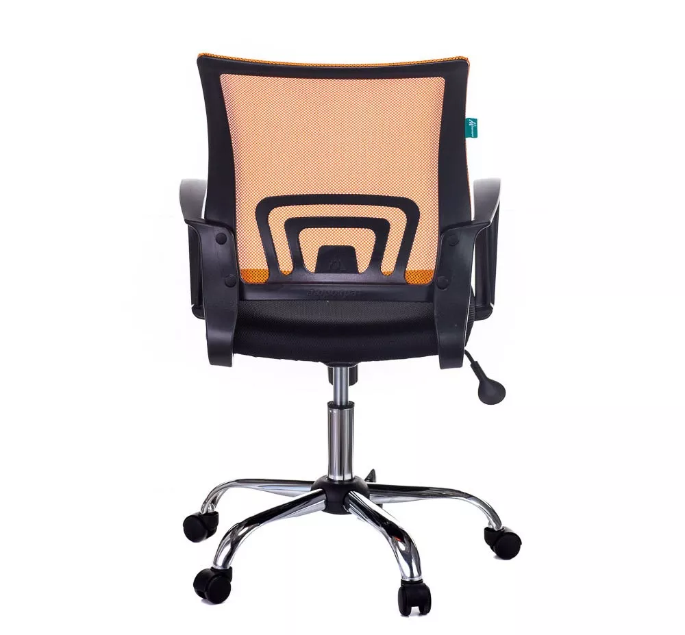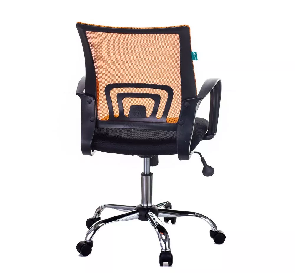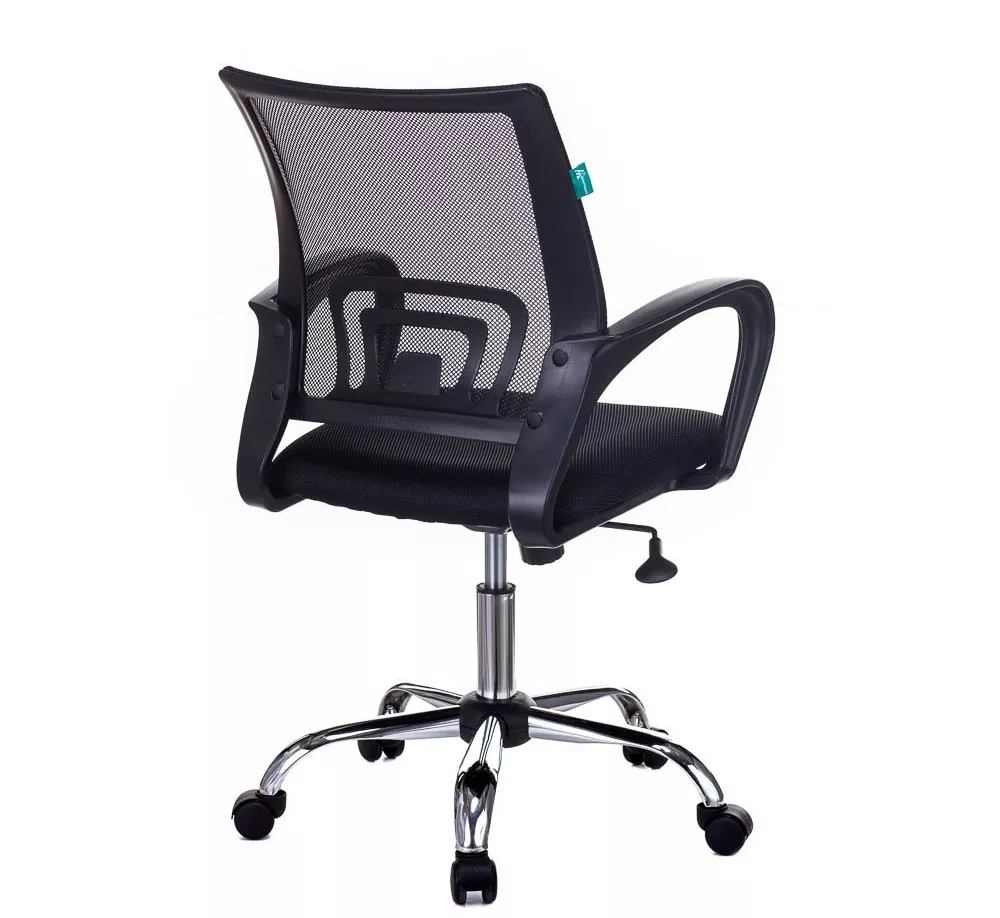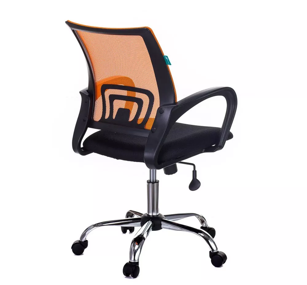 Хромированные элементы кресла выглядят стильно в любом интерьере. Для обивки сидения использована ткань, устойчивая к растяжению, истиранию. В лаконичный дизайн изделия прекрасно вписываются пластиковые подлокотники, которые будут очень удобными для владельца кресла. Хромированная пятилучевая крестовина с поворотными колесиками делает