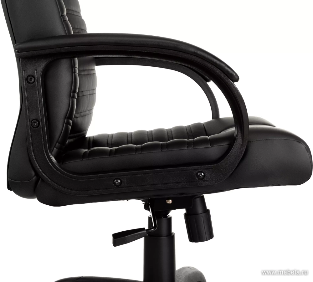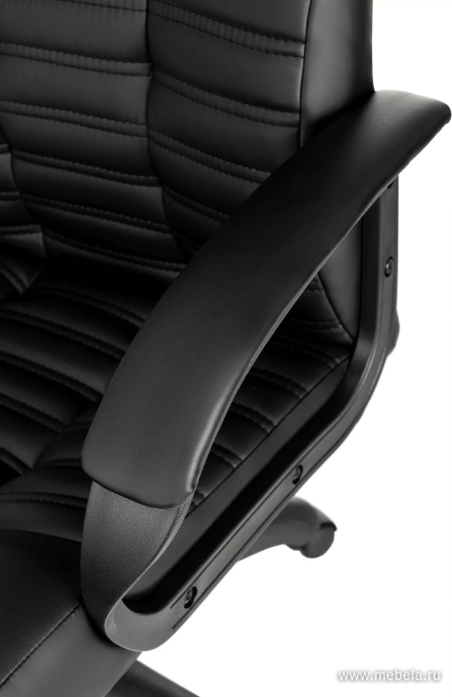 Обивка из черной экокожи практически не отличима от натуральной по внешнему виду. Крестовина и подлокотники изготовлены из прочного черного пластика. Спинка регулируется: можно менять и фиксировать угол наклона на свое усмотрение. Также есть настройка высоты и наклона сидушки. Модель отлично впи...