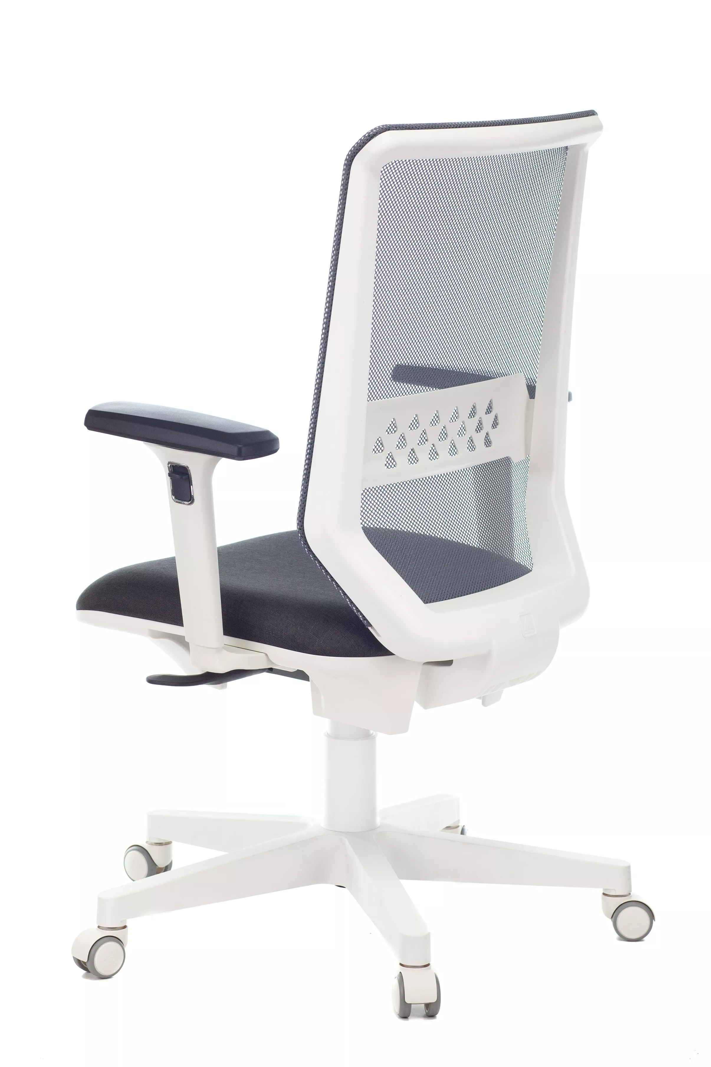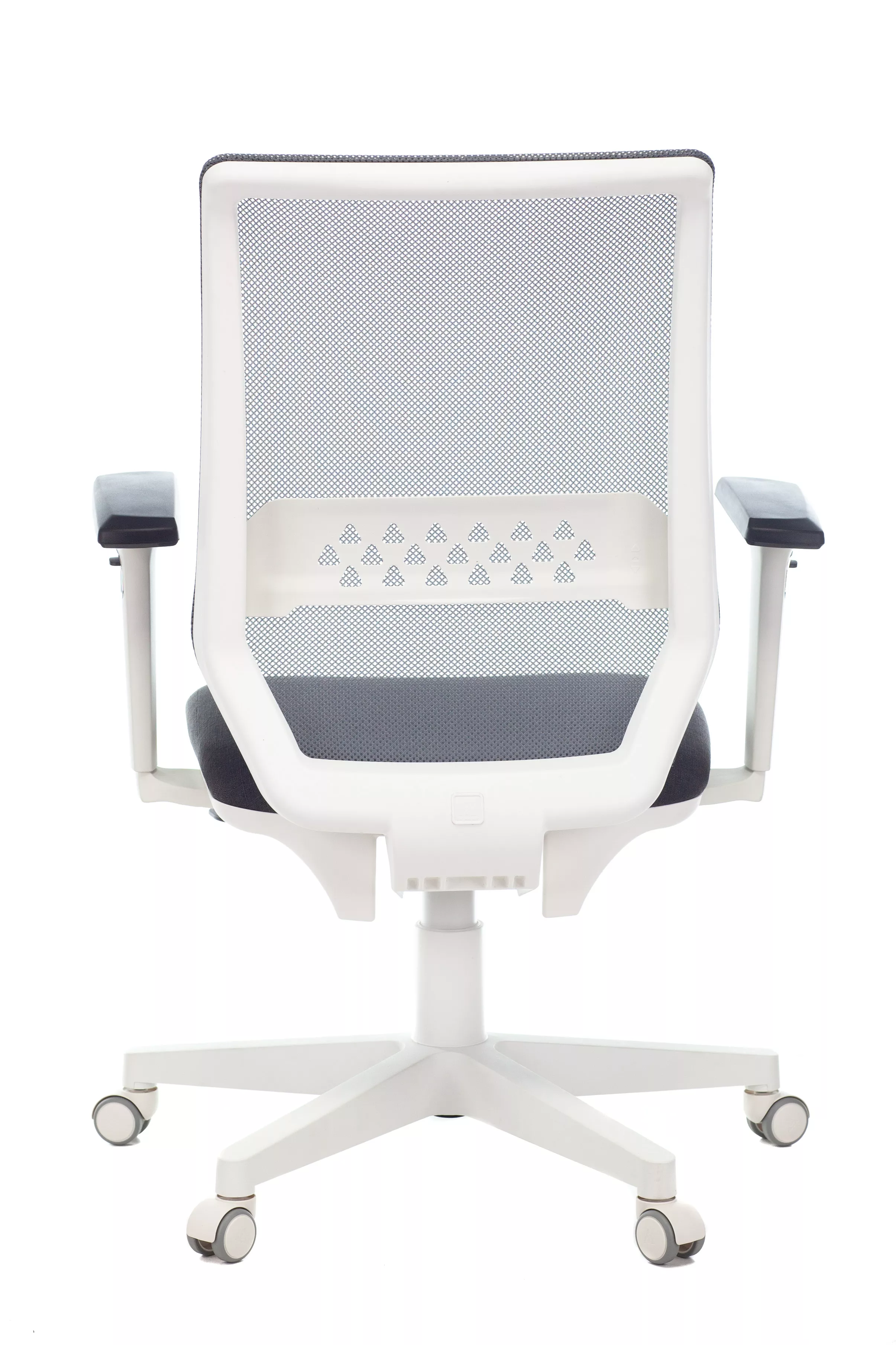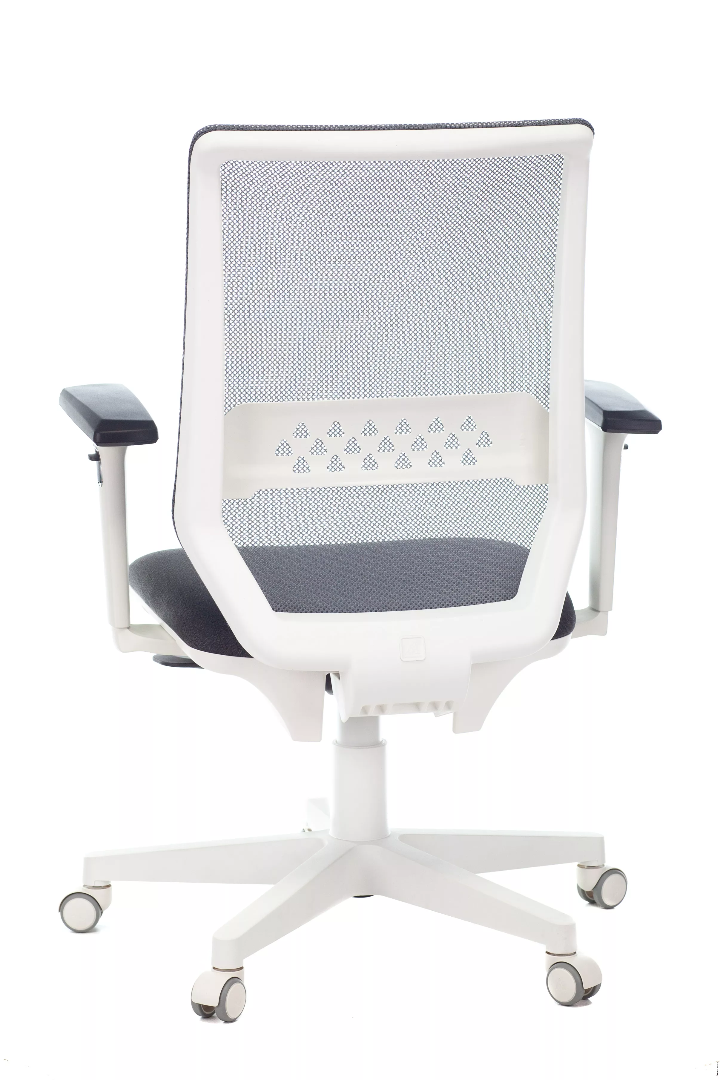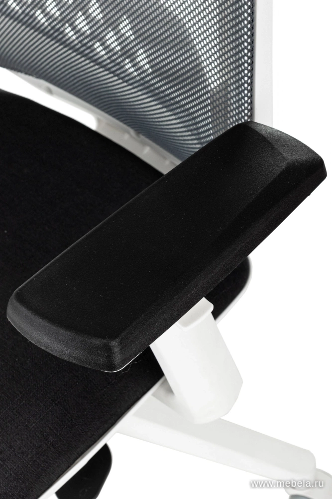 Подлокотники 3D обеспечивают возможность регулировки по высоте, ширине и углу наклона, что дополнительно улучшает эргономику. Высота кресла регулируется с помощью газлифта, что делает его подходящим для пользователей разного роста. Белая пластиковая крестовина придает креслу стильный вид и хорошую устойчивость, а колеса, предназначенные для паркета и ламината, обеспечивают легкость перемещения.