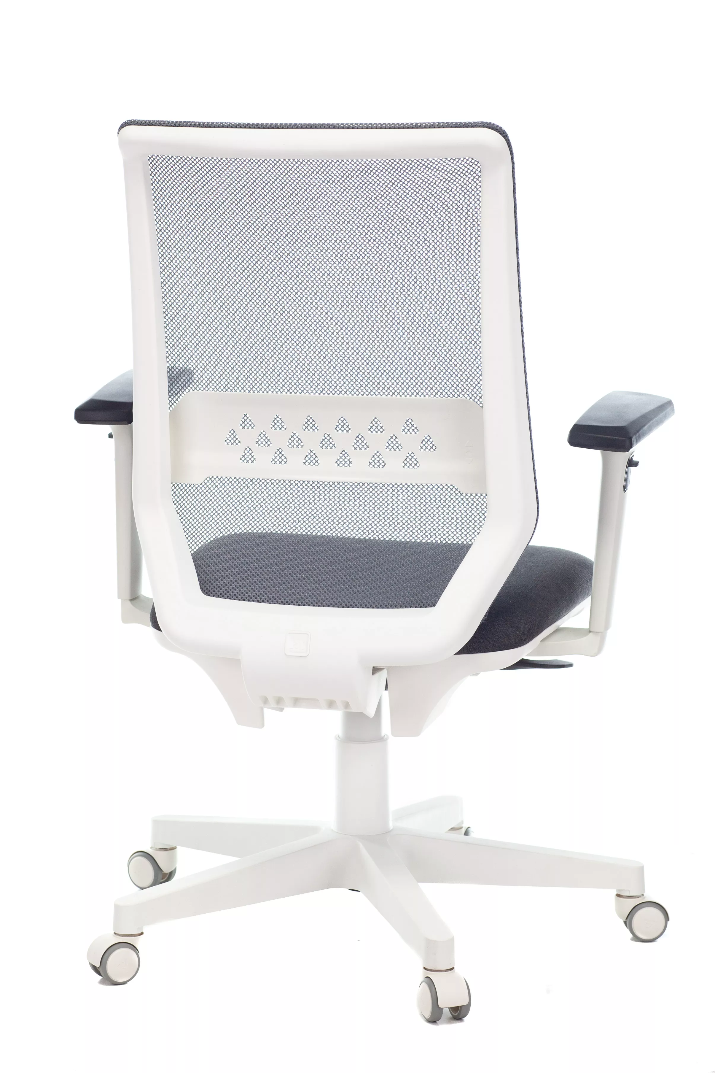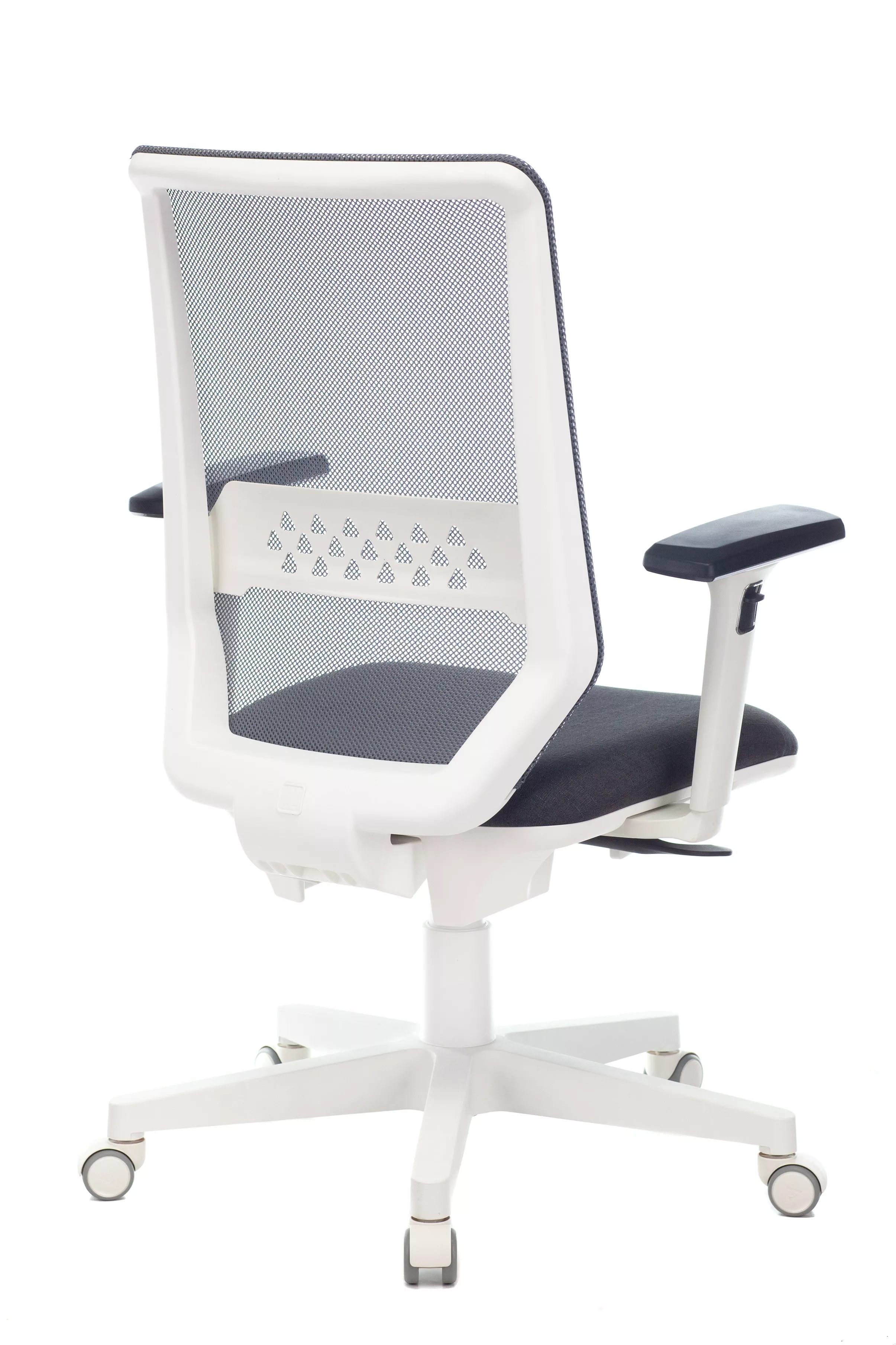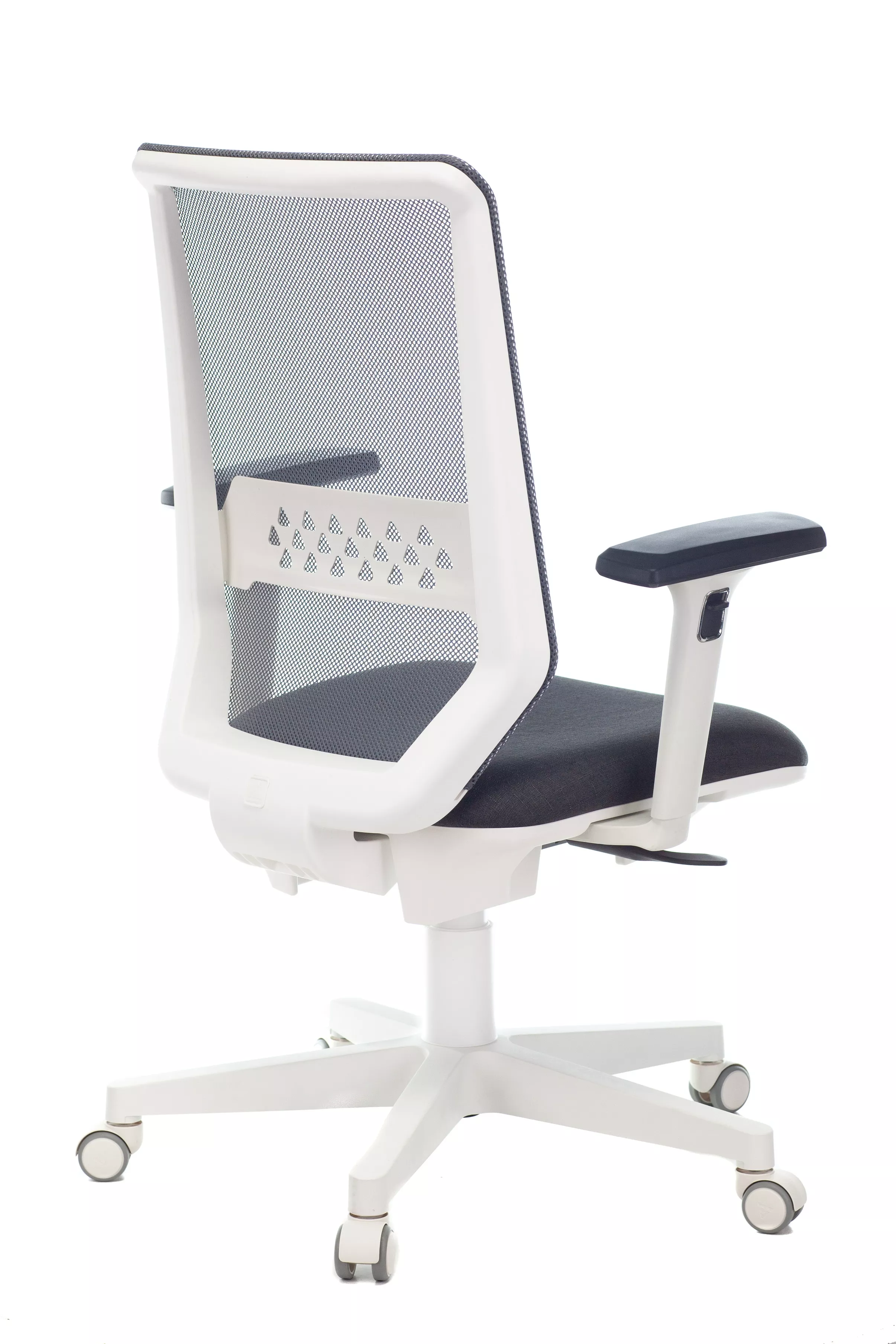 Подлокотники 3D обеспечивают возможность регулировки по высоте, ширине и углу наклона, что дополнительно улучшает эргономику. Высота кресла регулируется с помощью газлифта, что делает его подходящим для пользователей разного роста. Белая пластиковая крестовина придает креслу стильный вид и хорошую устойчивость, а колеса, предназначенные для паркета и ламината, обеспечивают легкость перемещения.