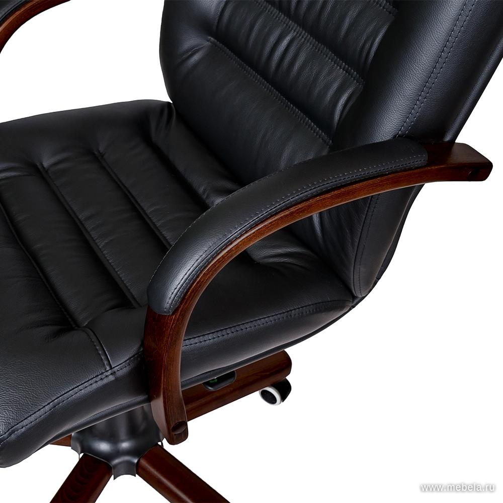 Подлокотники и оформление опоры кресла для руководителей Myra A выполнены с использование палисандра или темного ореха. Оба сорта древесины прекрасно контрастируют с черной натуральной кожей тончайшей выделки. Но эта модель может похвастаться не только безупречным видом, но и идеальной эргономикой. Объемная форма сидений обтекает каждую мышцу в теле и снимает с нее напряжение вместе с амортизацией спинки.
