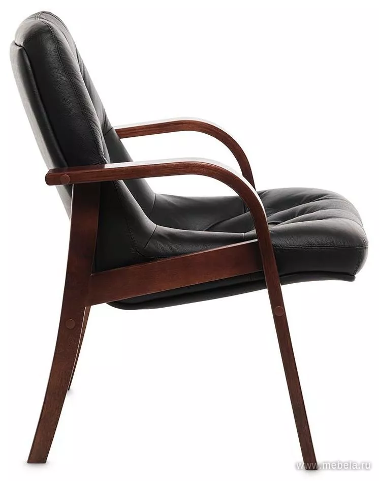 Стильный дизайн с классическим деревянным основанием и элегантная кожаная обивка — это безупречное сочетание, которое делает кресло универсальным. Модель отлично подойдет для оформления переговорных, конференц-залов, оформленных в современном стиле: четкие линии силуэта, солидность и комфортная посадка.