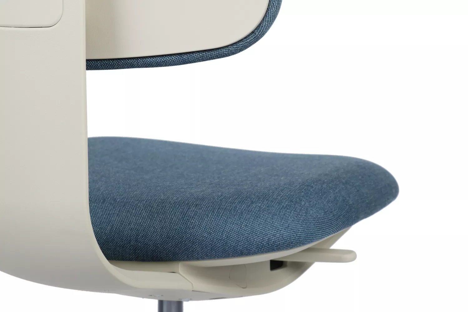 Кресло имеет прочную крестовину диаметром 600 мм из высококачественного пластика с упором, что обеспечивает стабильность и безопасность во время использования. Ролики диаметром 50 мм с покрытием PU гарантируют легкость передвижения по различным поверхностям, не оставляя следов.