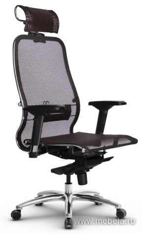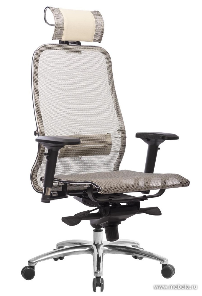 Это оригинальное кресло для офиса сочетает в себе два противоположных качества: изящество и массивность. Тонкая изогнутая спинка гармонично сбалансирована массивной крестовиной, объемным подголовников и укороченными подлокотниками.