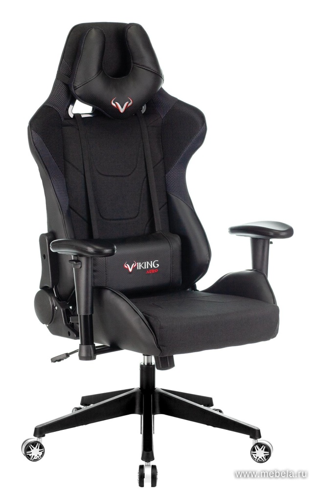 Удобное и комфортное кресло Viking-4 aero специально разработано для тех, кто много времени проводят за компьютером. Плавные изгибы спинки с фигурным тиснением по центру, элегантный силуэт, стильная комбинация черной экокожи и ткани, Т-образные, регулируемые и удобные подставки для рук создают модный внешний вид.