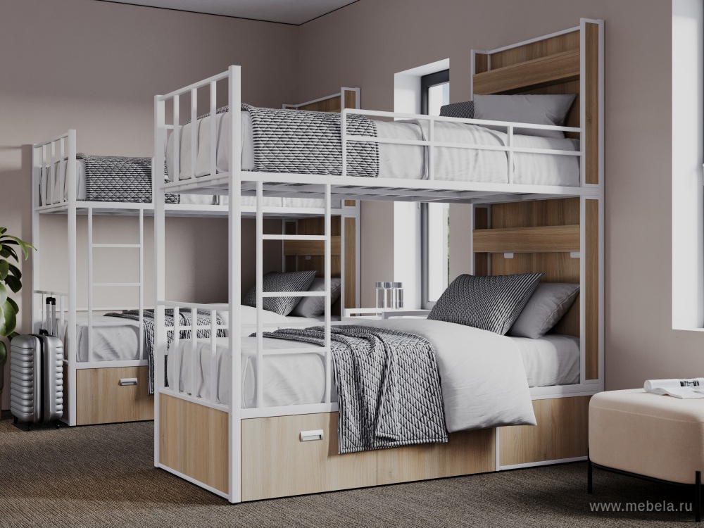 Дополнительные функции включают возможность установки светильников и USB-розеток на полках каждого яруса, а также прокладку электрических кабелей внутри стоек. Для крупных заказов (от 10 шт.) возможна покраска в любой цвет по RAL — просто свяжитесь с вашим менеджером для получения подробной информации. Кровать Overnight — это идеальный выбор для комфортного сна и удобства!