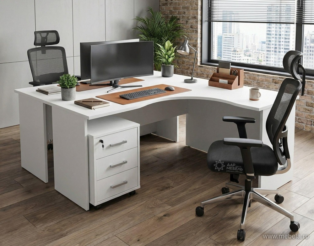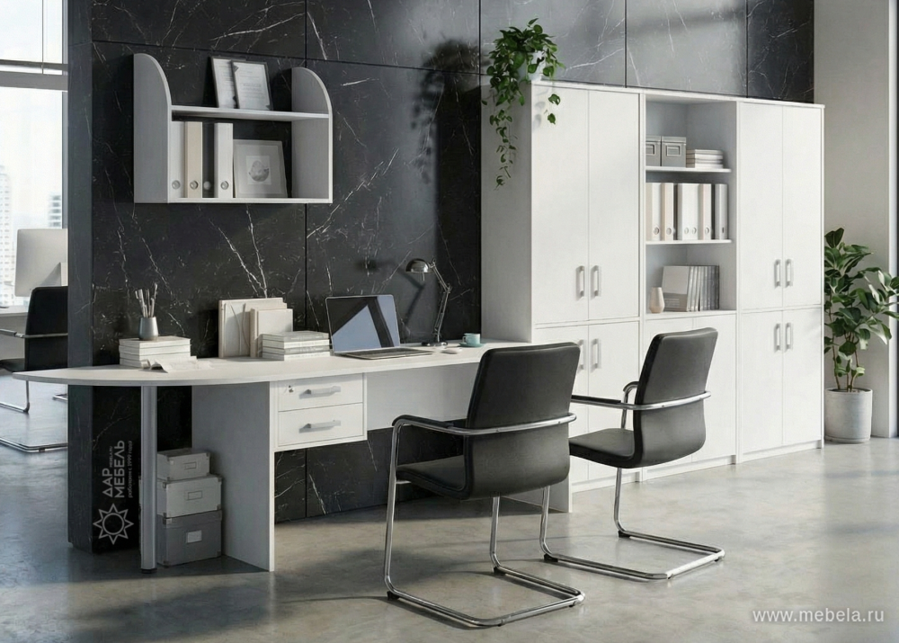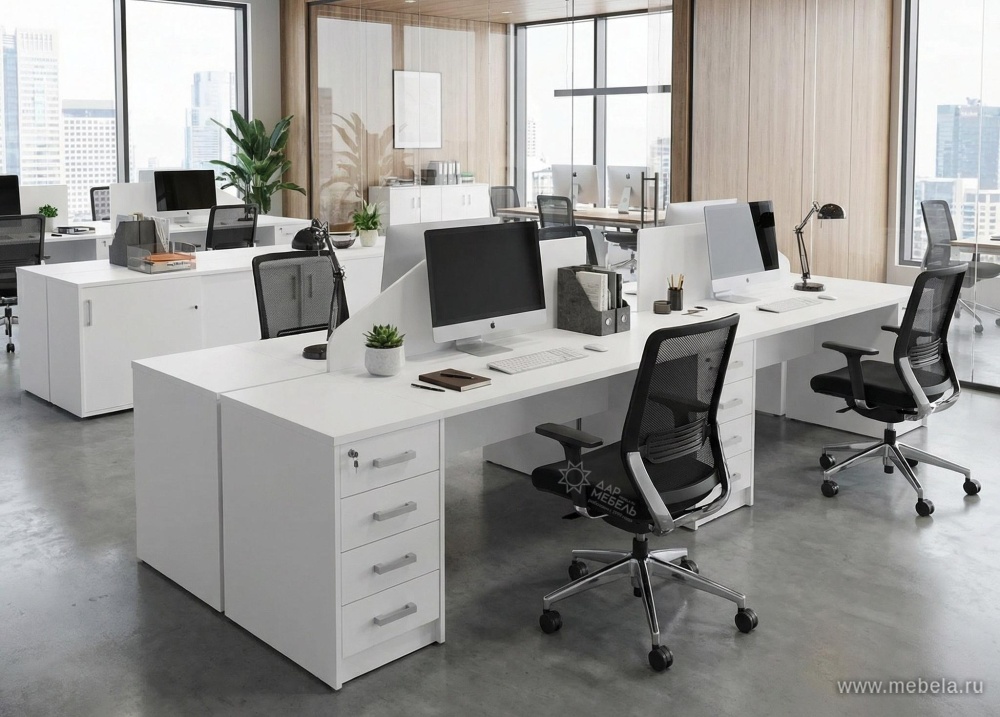 Мебель Арго (Argo) в белом цвете освежит любой офис и сделает рутинный рабочий процесс гораздо интереснее. Комбинированные цветовые решения (цветные вставки на ящиках столов и т.д.) и эргономичный дизайн создадут не только уникальную атмосферу, но и повысят эффективность работы.