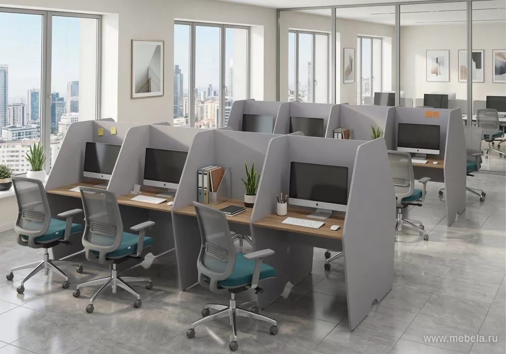 Один модуль рассчитан на одного оператора колл-центра, но количество модулей ограничено лишь размерами помещения и требованиями охраны труда. Цена указана за один модуль с вертикальной и двумя боковыми перегородками. Перегородки отделяют сотрудников друг от друга так, чтобы никто не мешал другом...