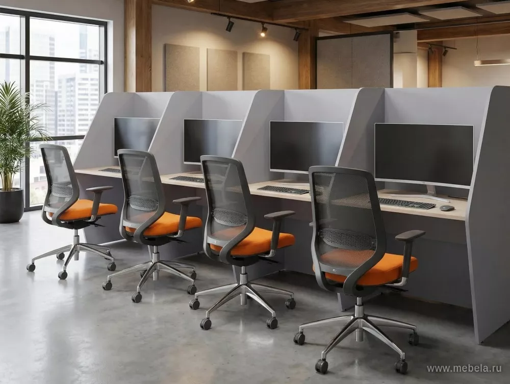 Модульные столы для обустройства колл-центра в современном стиле. Все элементы легко комбинируются друг с другом. Чтобы организовать новое рабочее место, достаточно докупить один модуль. Комплект позволяет использовать пространство рационально.