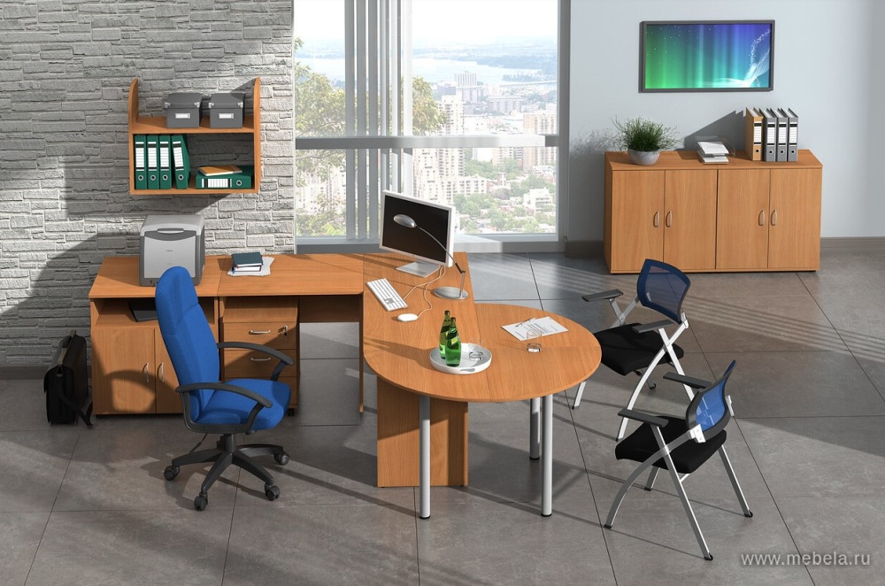 Аскетичность линий и природные мотивы в цветовой гамме – вот главные отличительные особенности мебели для офиса из гарнитура Эко. Внешняя простота не сказывается отрицательно на функциональных возможностях. Модульная структура элементов позволяет собирать из них рабочие места любой сложности.