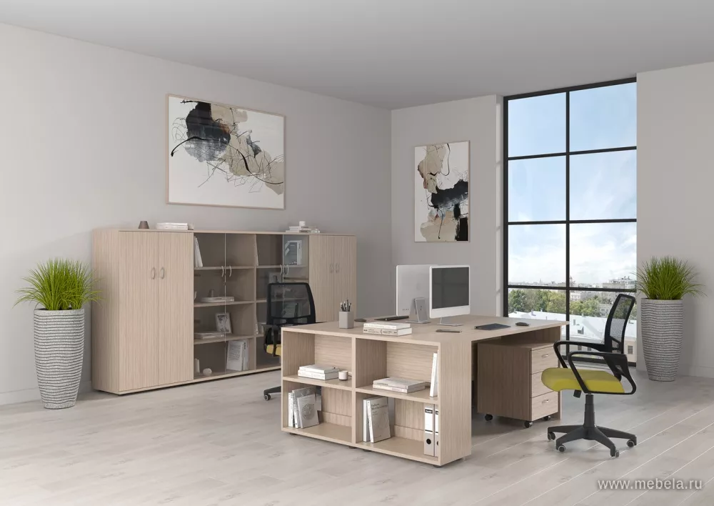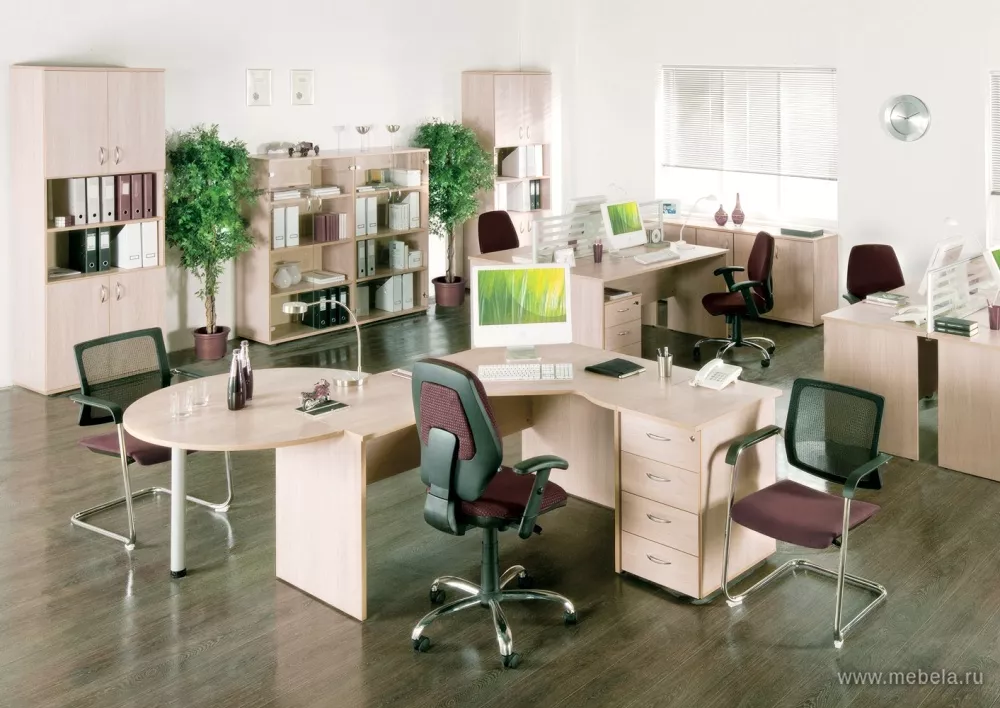 Главной особенностью мебели для офисов Формула является возможность создания из нее сложно-комбинированных рабочих зон. Гарнитур представлен самыми разными геометрическими решениями, одинаковыми по высоте, способными быть объединенными друг с другом по воле заказчика.
