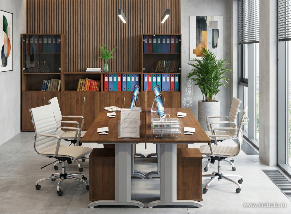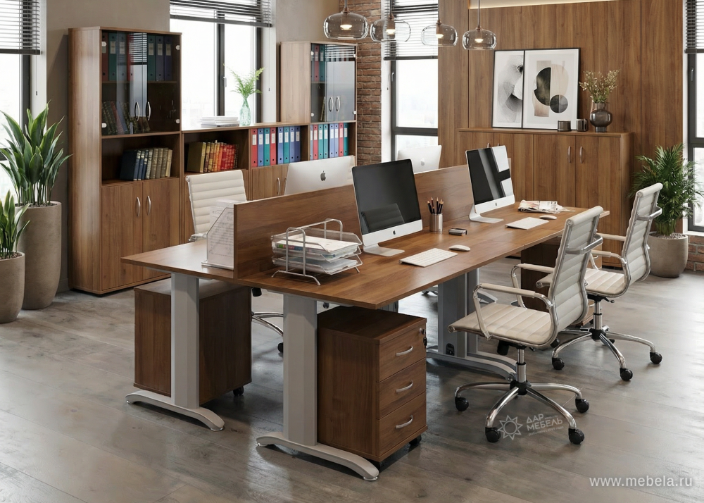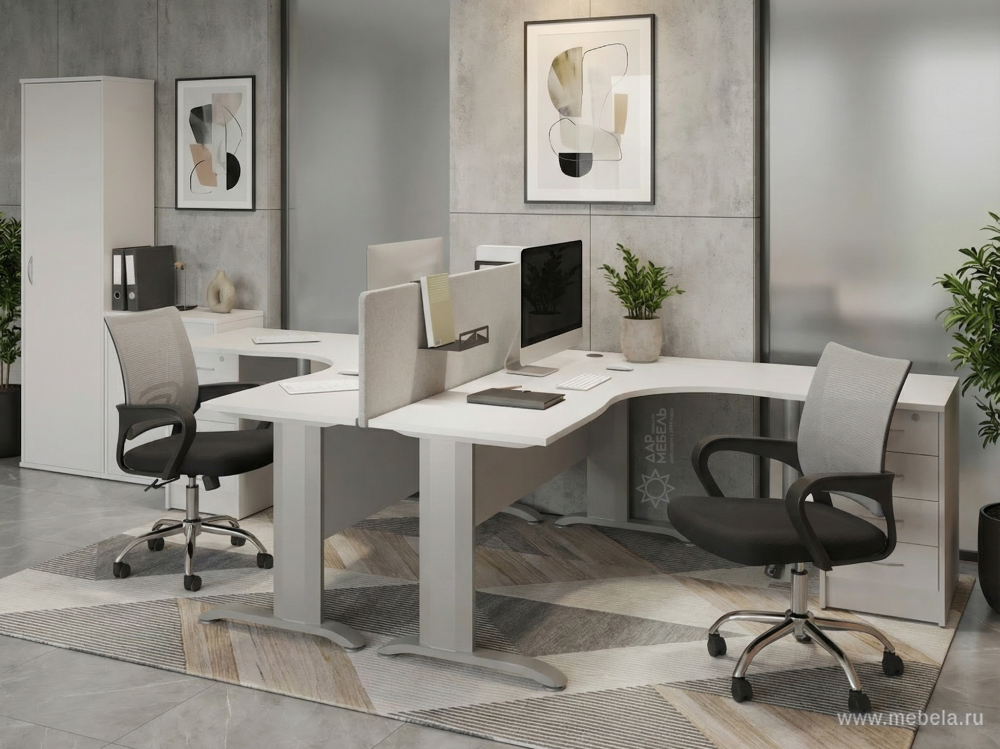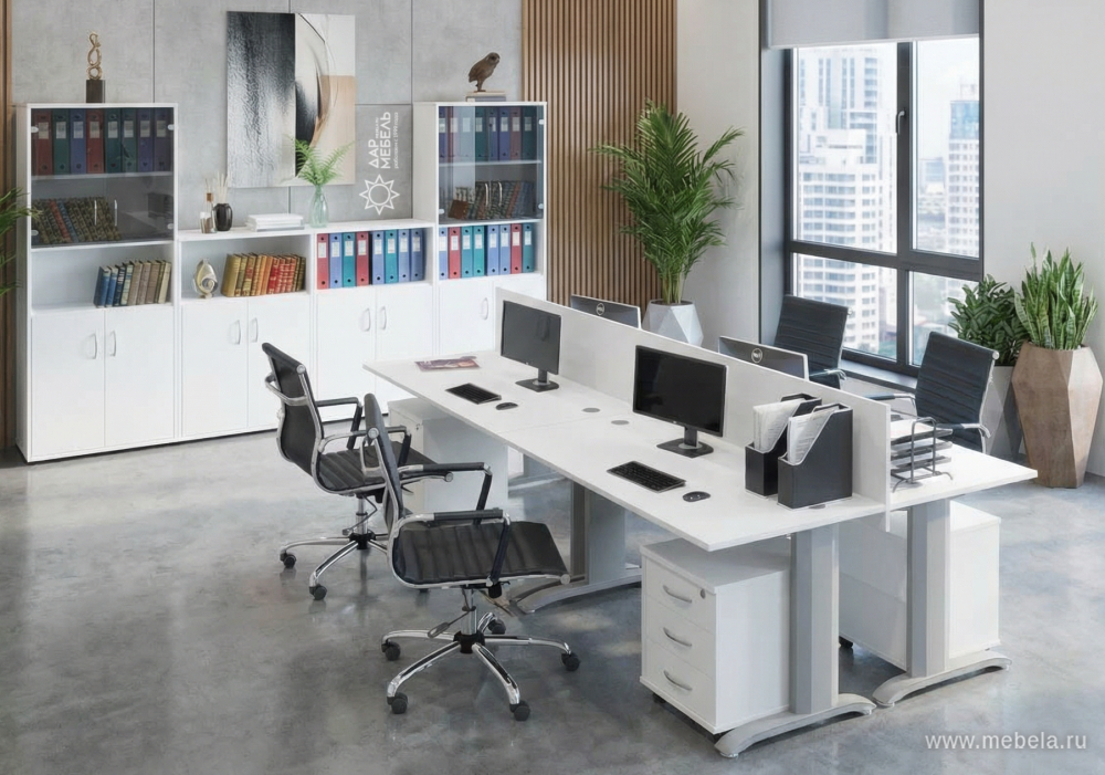 Высокотехнологичный стиль мебели для персонала RIVA METAL придаст любому офису футуристический стиль. Современным тенденциям этот комплект соответствует не только внешне. Внутри полых опор есть возможность для прокладки кабелей, а на самих столах есть выходы с заглушками для подключения.