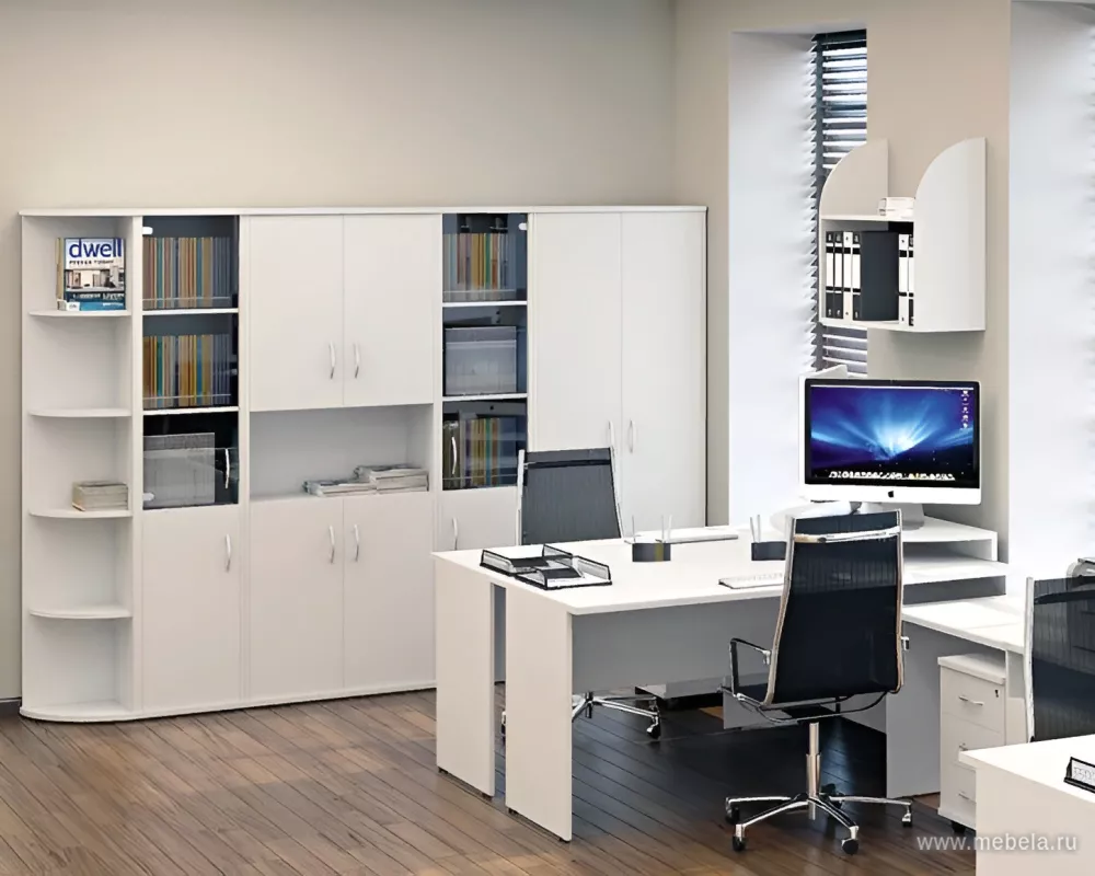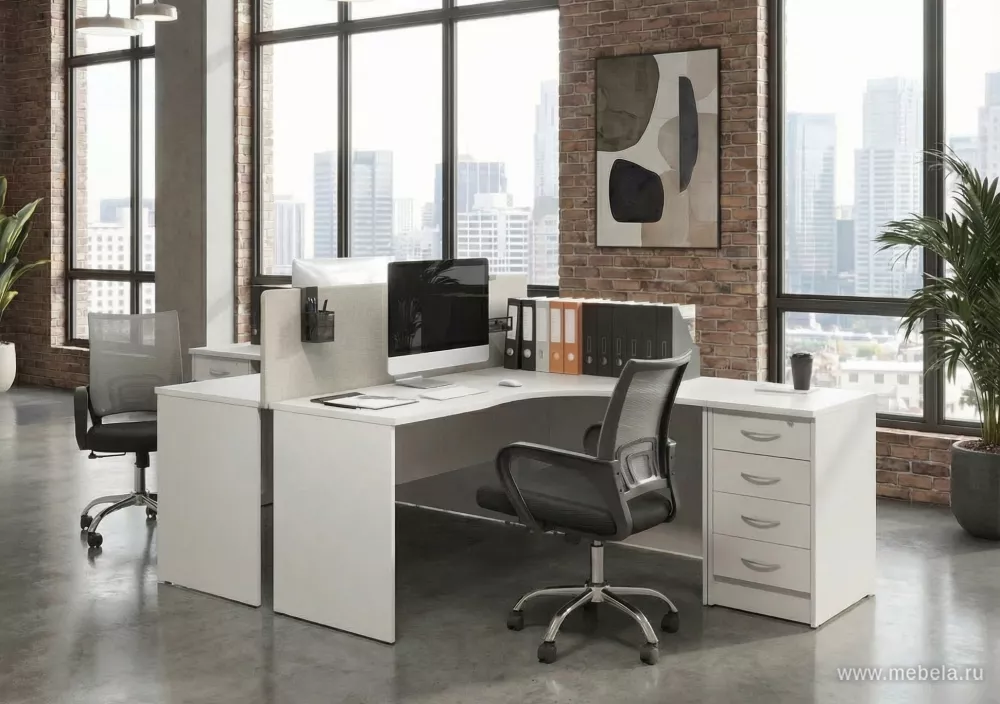 Предельно расширить пространство даже в самом тесном офисе поможет мебель Riva New. Воздушный дизайн достигнут за счет кристально белого цвета ЛДСП панелей и предельно простой конструкции мебели. Ни одного лишнего элемента в конструкции не ограничивает высокую функциональность мебели Riva New.