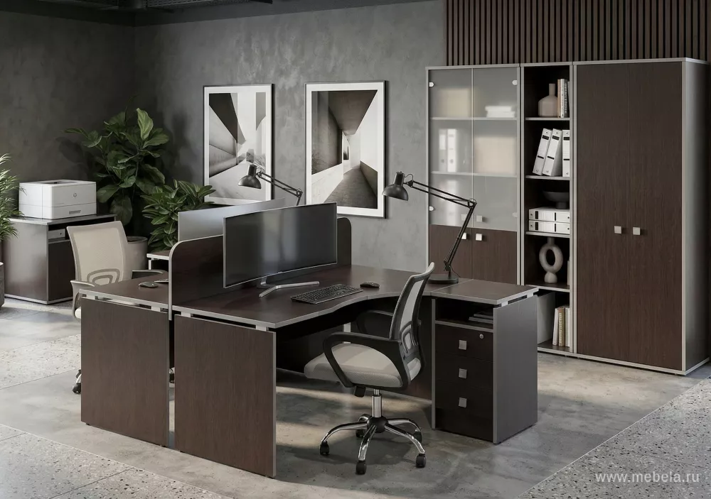 Гарнитур офисной мебели Стайл Венге создан для ценителей современного делового ритма жизни. В каждой линии четко виден Хай-Тек стиль, выгодно выделяющий эту мебель из множества других похожих друг на друга решений для офиса. Максимальная эффективность рабочих зон поможет качественно организовать любой офисный быт.