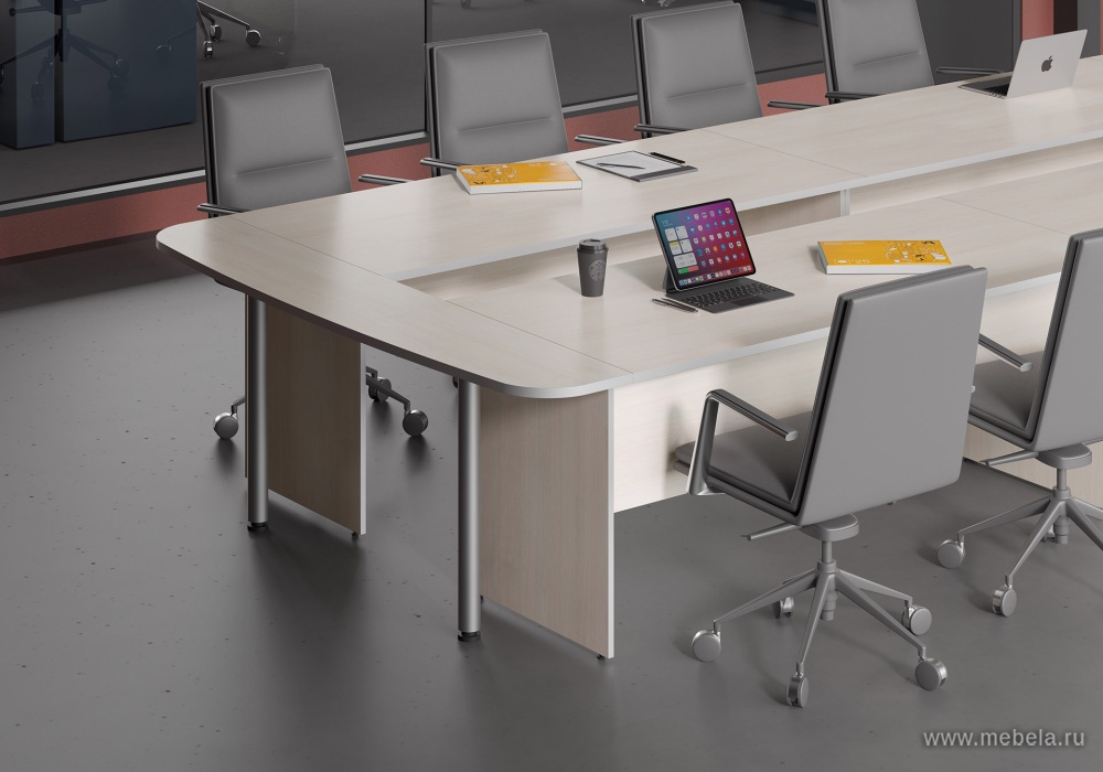 На высокотехнологичный образ мебели Swift работает все в ее виде. Висящие на опорах приставки к столам, обработка торцов “под металл” и полностью металлические ножки некоторых столов. В образе Swift вообще очень много металла. И все это стильное решение легко трансформируется в рабочие места люб...