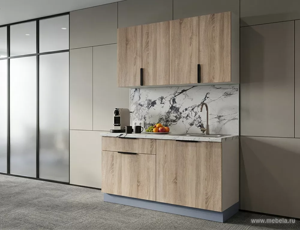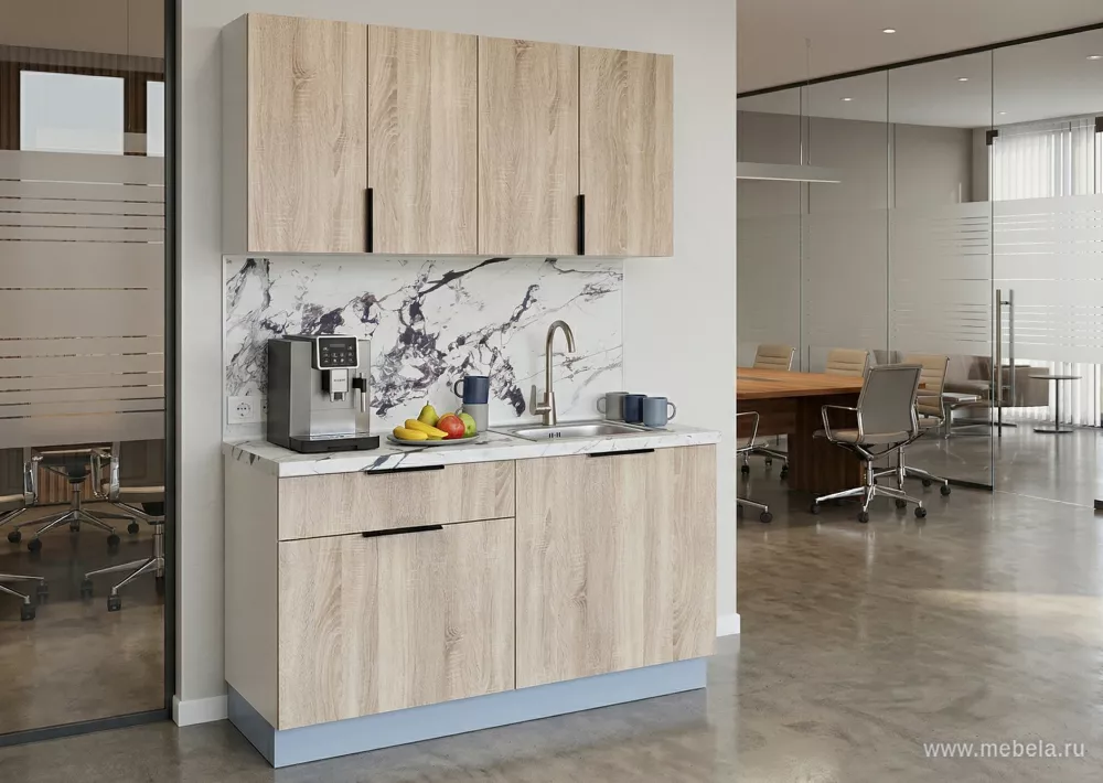 Офисная кухня Вок в цвете Дуб сонома - это прекрасное сочетание стиля, удобства и надежности. С ее помощью вы сможете создать уютное и функциональное пространство для отдыха и приема пищи в вашем офисе. Благодаря качественным материалам и тщательной обработке, кухня будет служить вам долгие годы, радуя вас своей красотой.