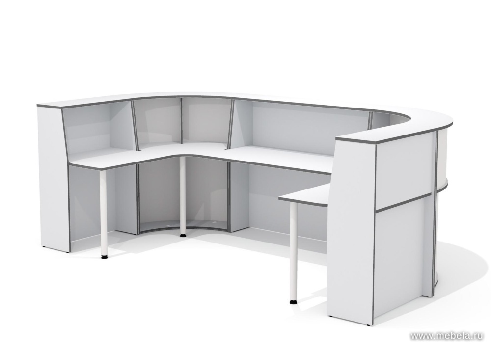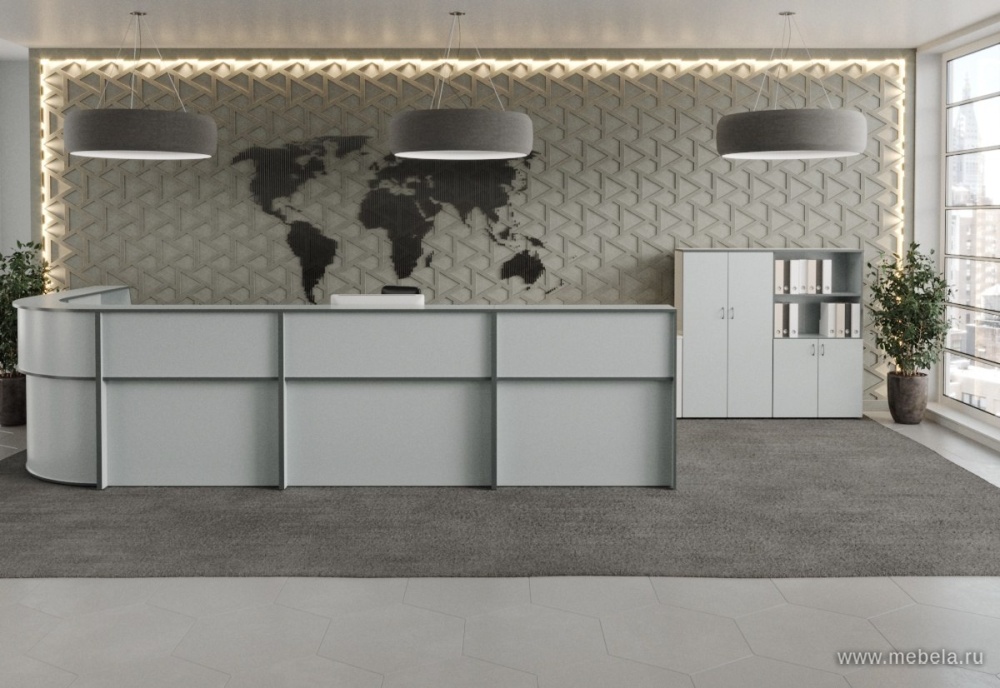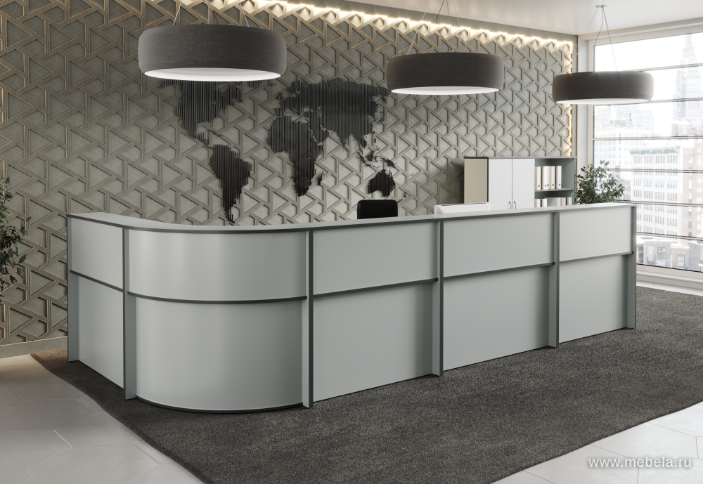 Стойка ресепшн Агат светло-серого цвета российского производства представлена в различных моделях и дизайнах. Различные формы, размеры и варианты комплектации позволят подобрать ресепшен, который идеально впишется в интерьер вашего помещения.