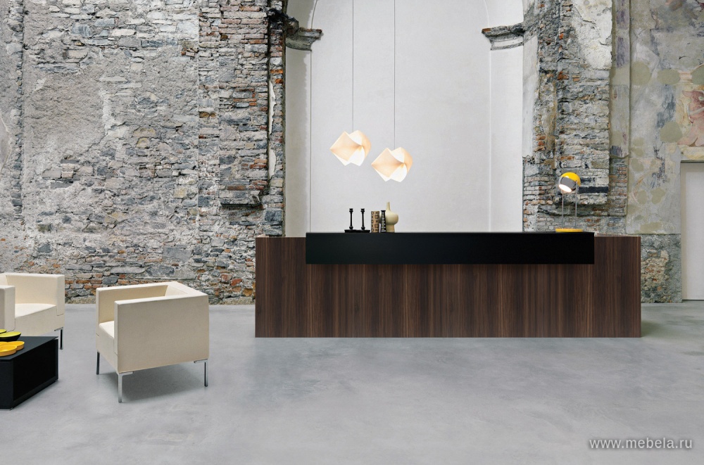 Прямые линии и четкие углы с минимумом декора – последний тренд современного европейского дизайна. Итальянские разработчики стоек ресепшн Factory использовали только силу цвета в своем комплекте. Помимо эффектного покрытия ламината с имитацией темных пород дерева, столики для клиентов выполнены ...