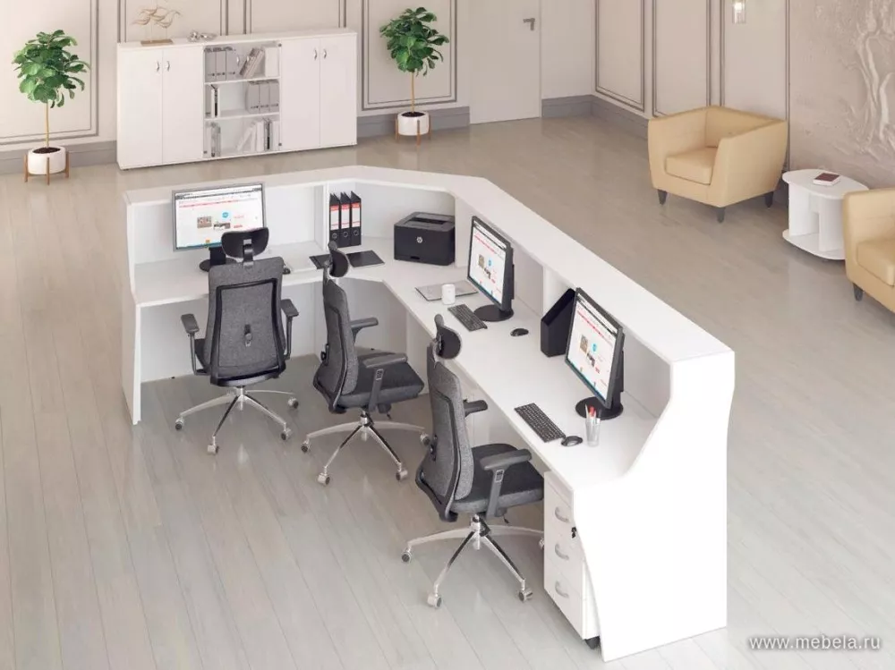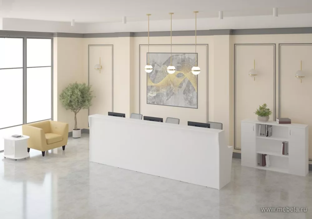 Лаконичная и респектабельная стойка Комфорт White в белом цвете - стильный вариант, сочетающий эстетику и удобство, который подчеркнет статус компании и обеспечит администратору максимальный комфорт во время работы. Модель одновременно выполняет функции рабочего стола для сотрудника и гостевой столешницы для ...