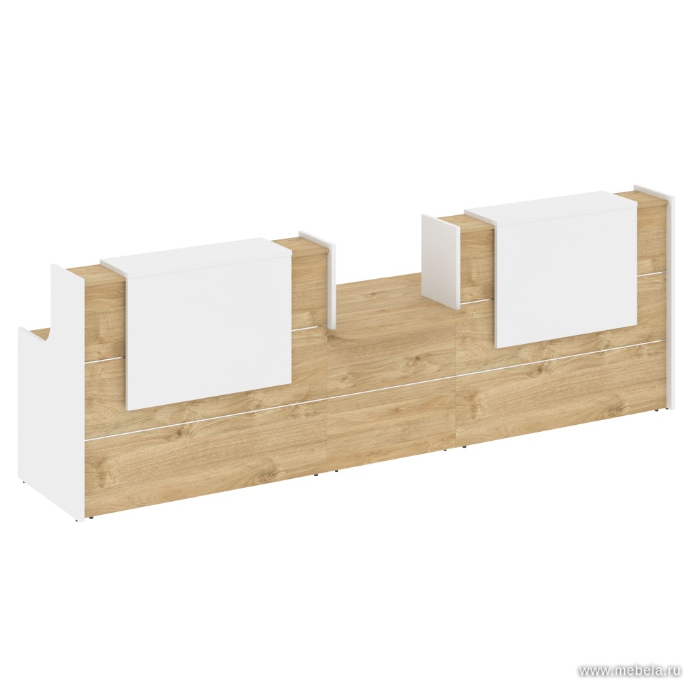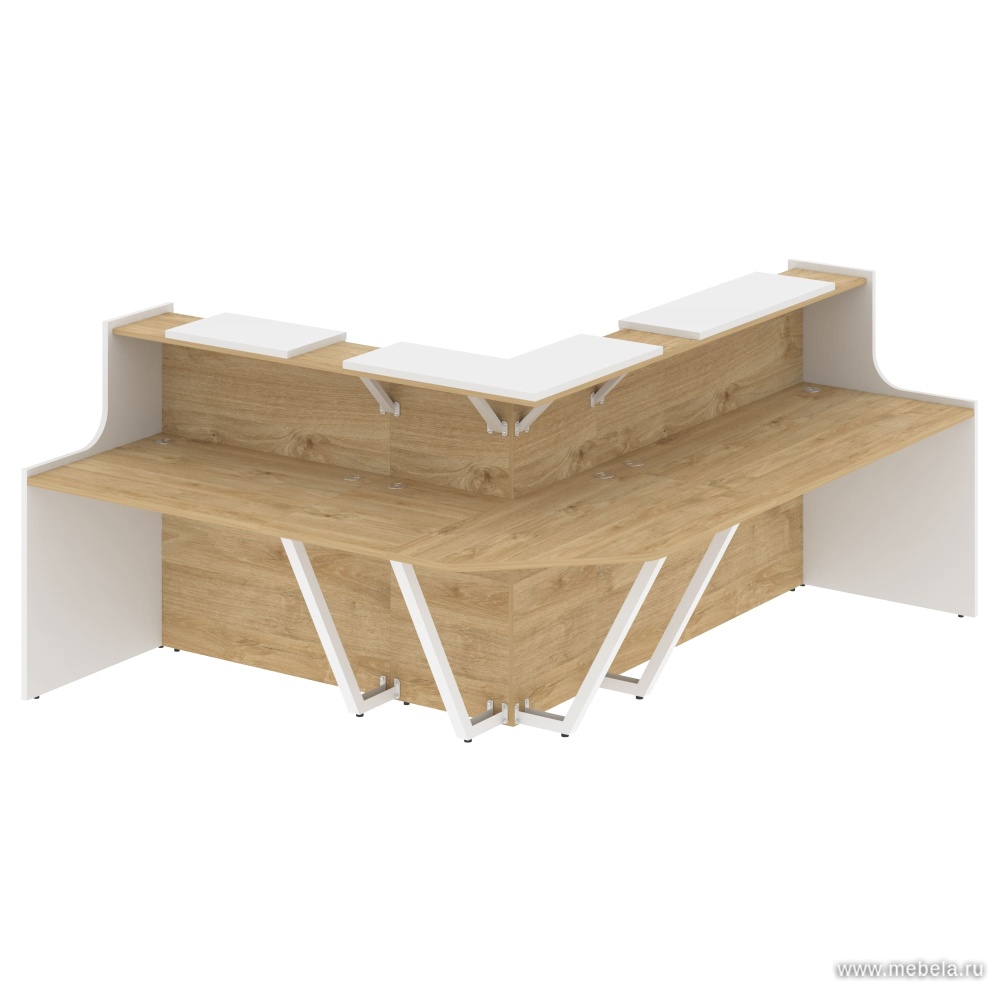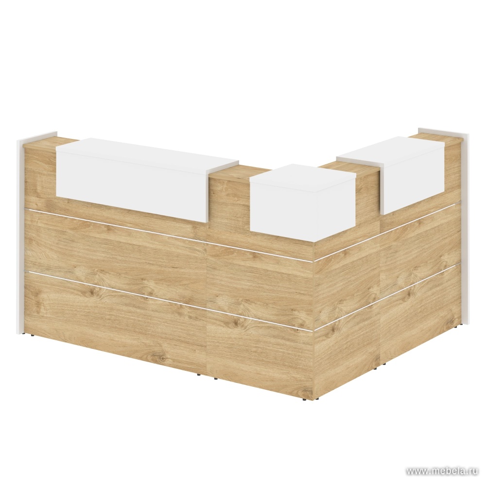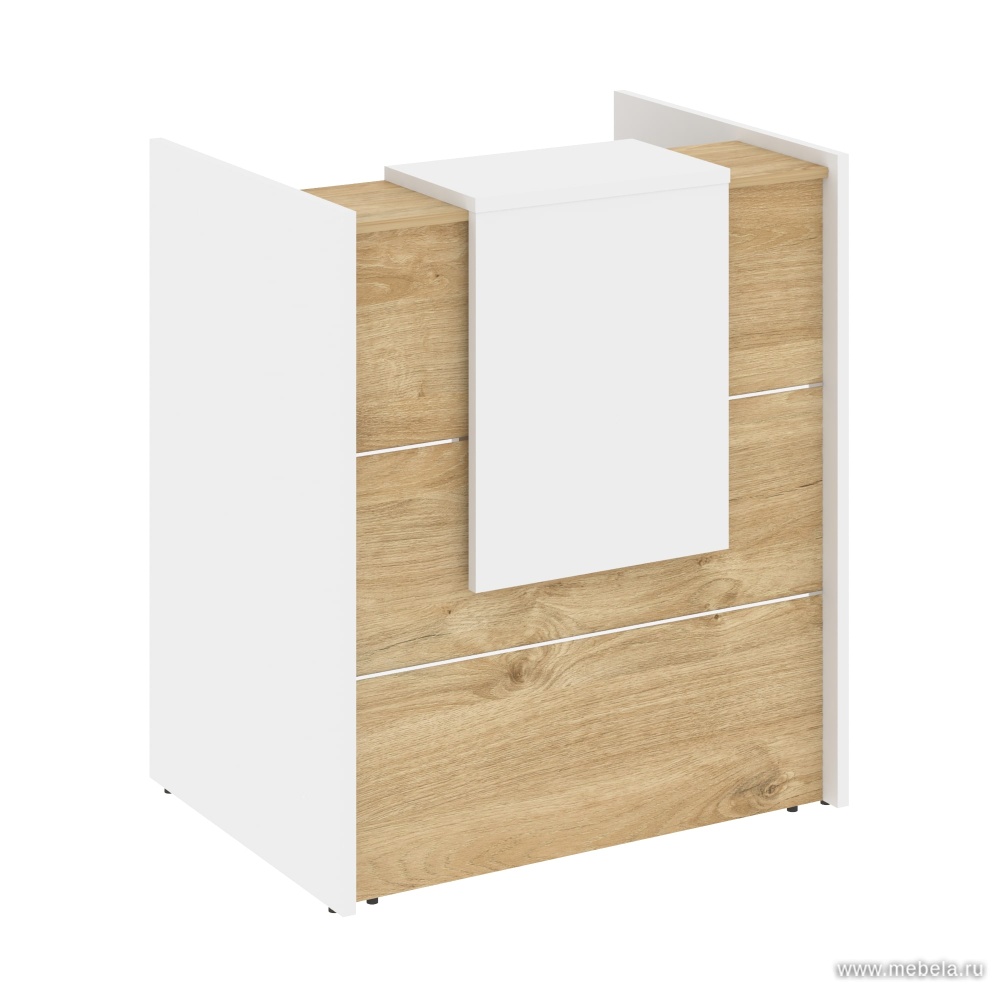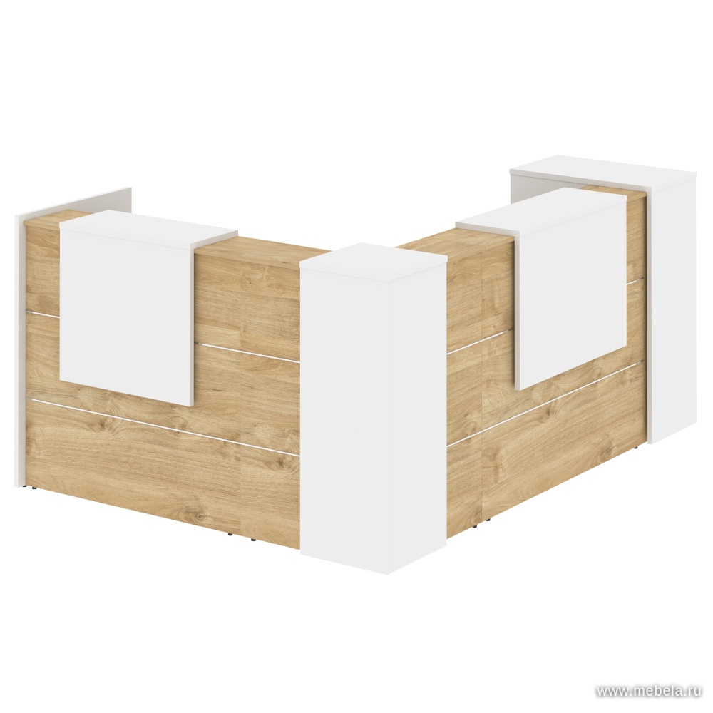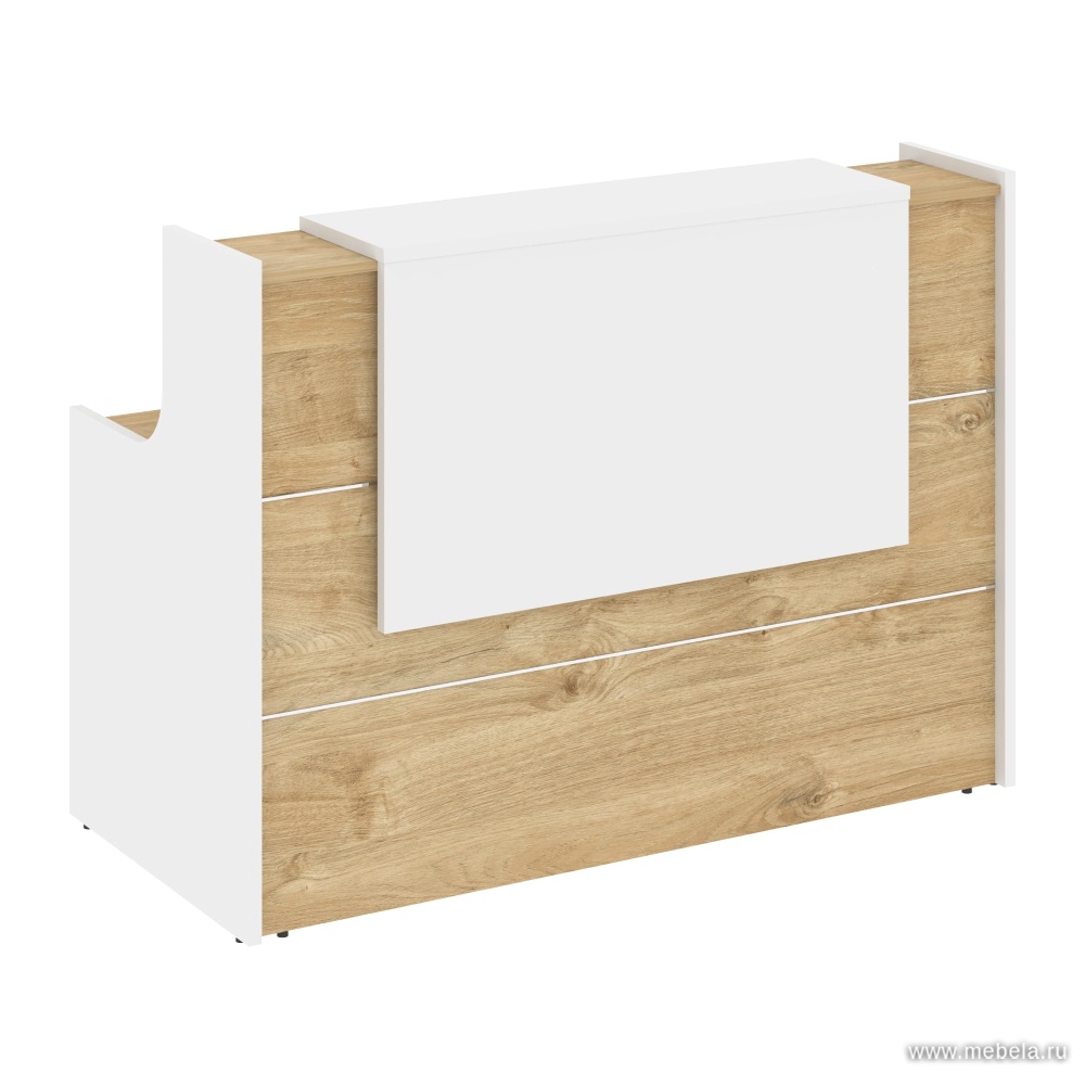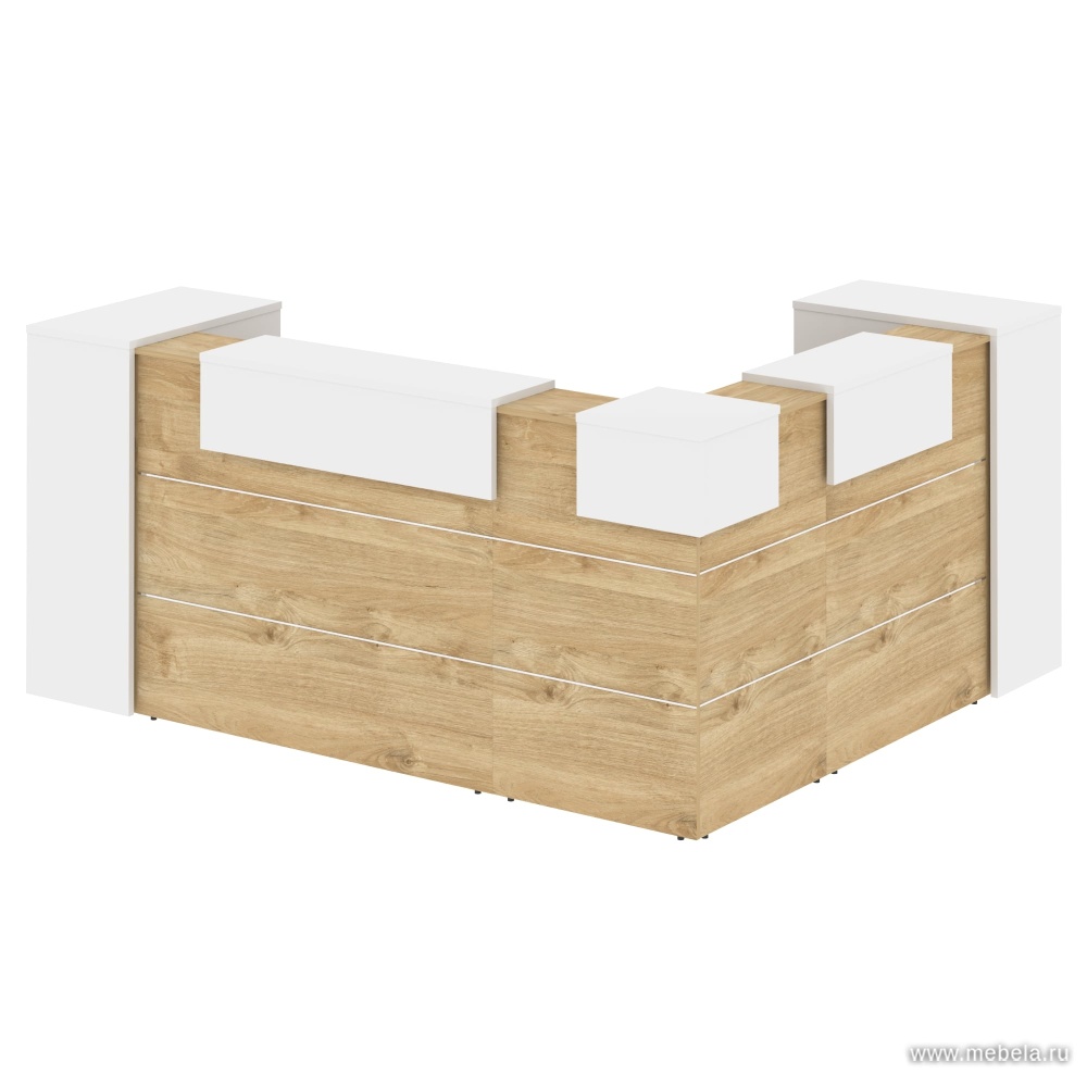 Ресепшн Onix в цвете тиквуд выполнена в эргономичном и современном стиле. Оригинальные геометрические модули и возможность объединения нескольких контрастных декоров придают стойке визуальную легкость и стиль. Модные цвета древесного декорирования в сочетании с белым цветом опор столешницы и топа освежают интерьер. ...
