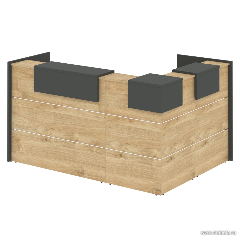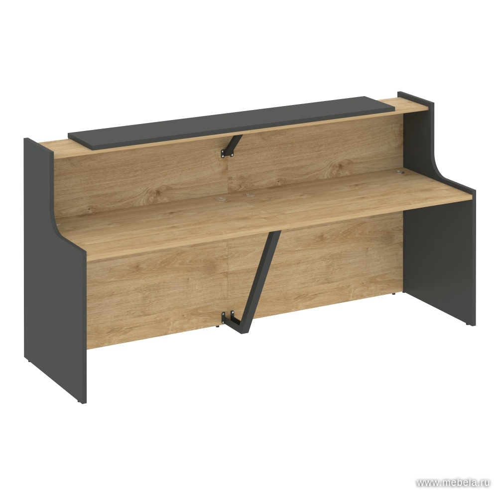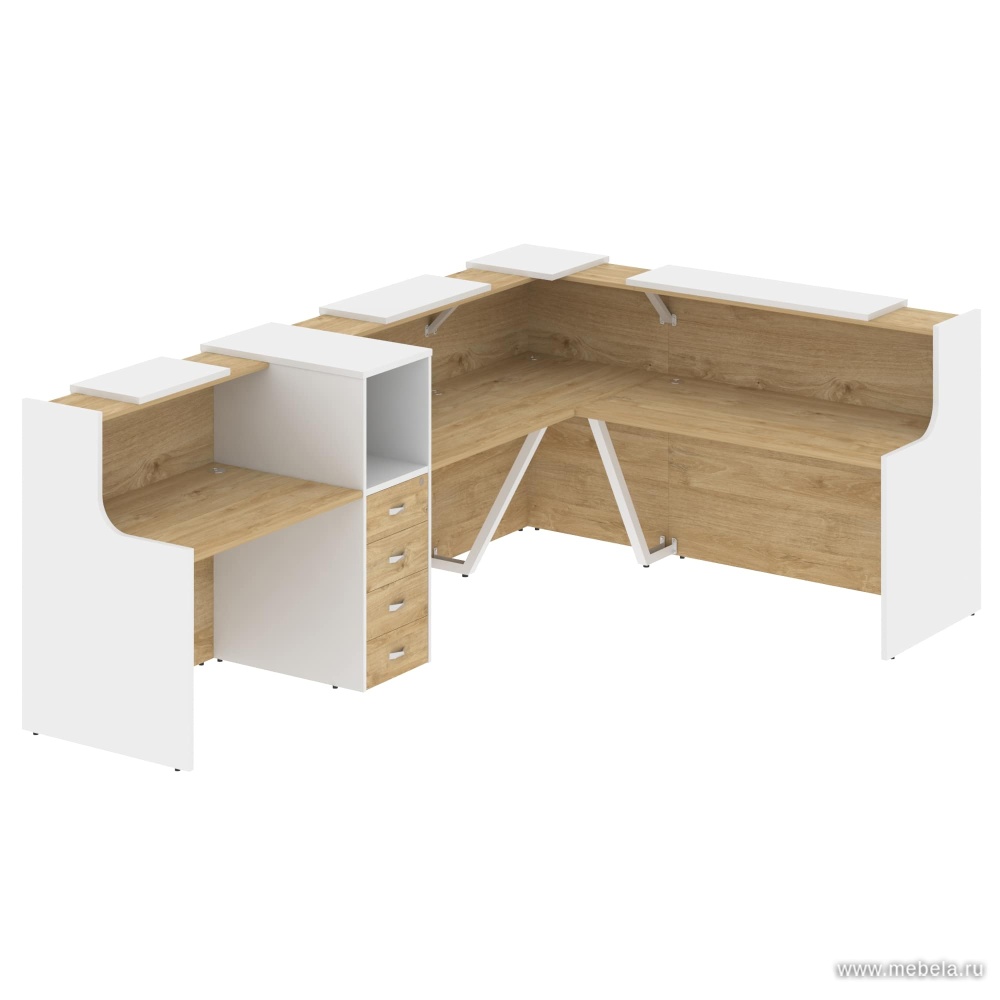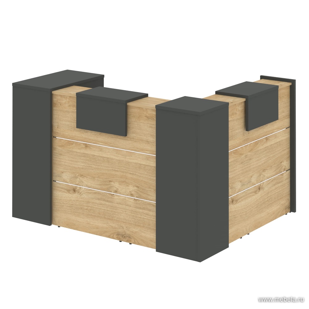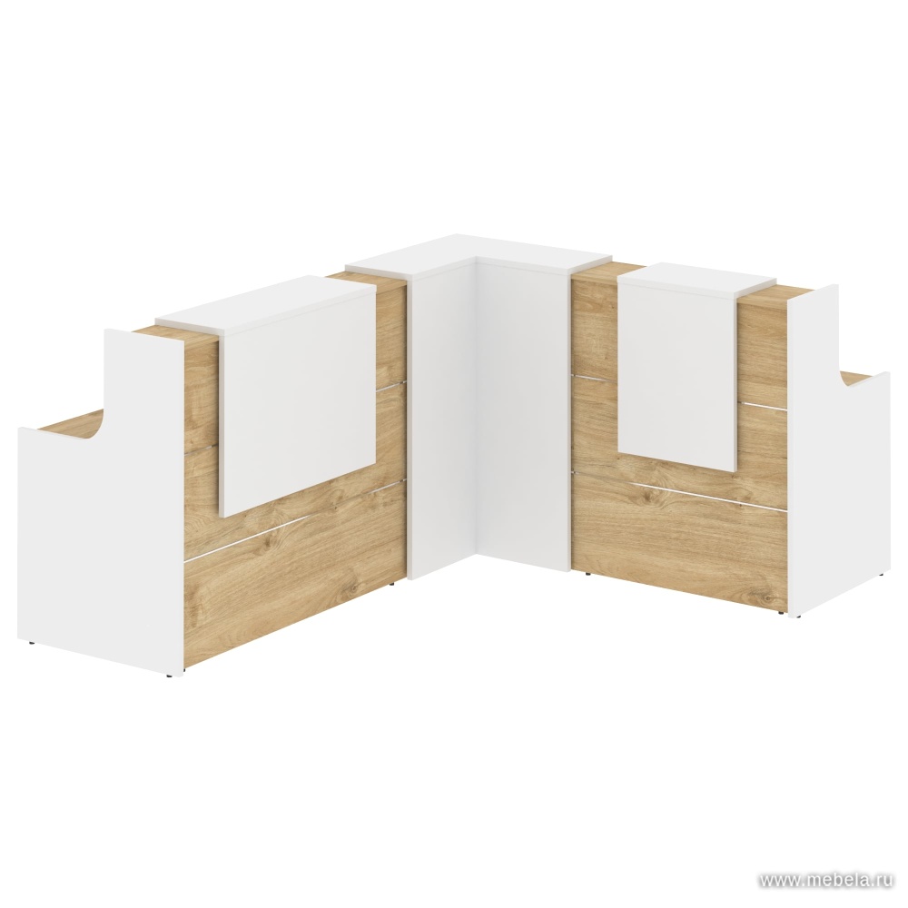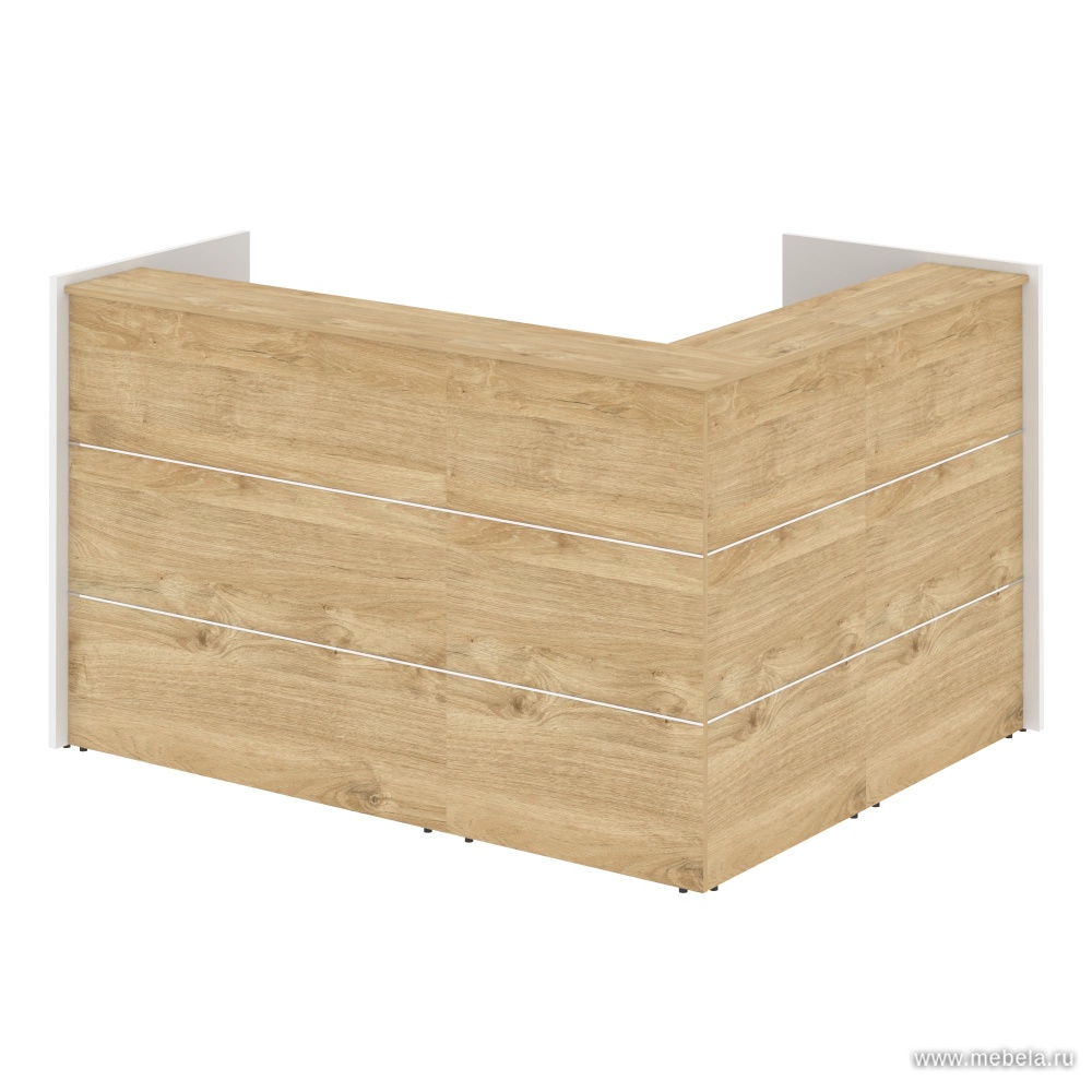 Ресепшн Onix в цвете тиквуд выполнена в эргономичном и современном стиле. Оригинальные геометрические модули и возможность объединения нескольких контрастных декоров придают стойке визуальную легкость и стиль. Модные цвета древесного декорирования в сочетании с белым цветом опор столешницы и топа освежают интерьер. ...