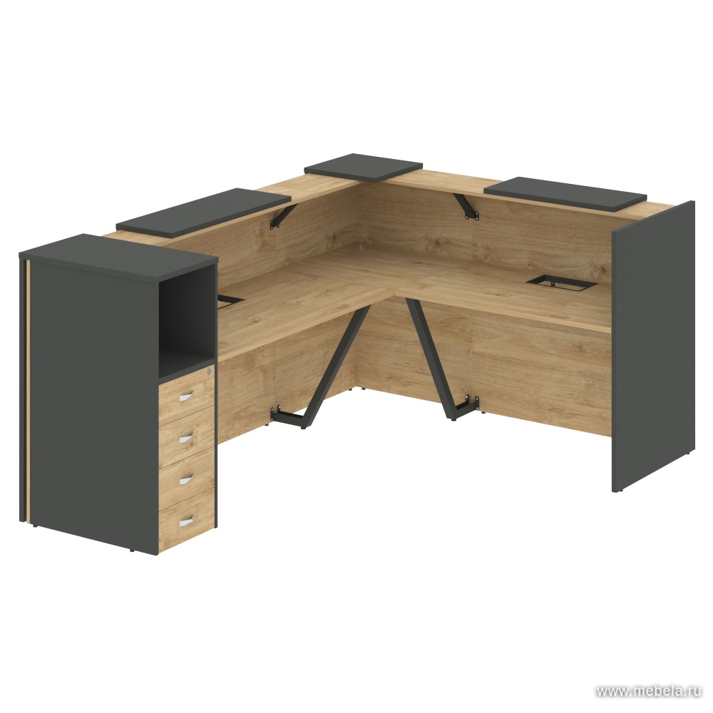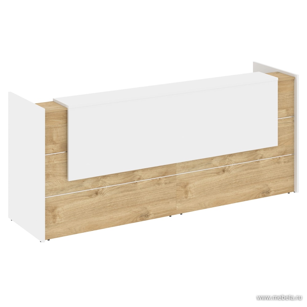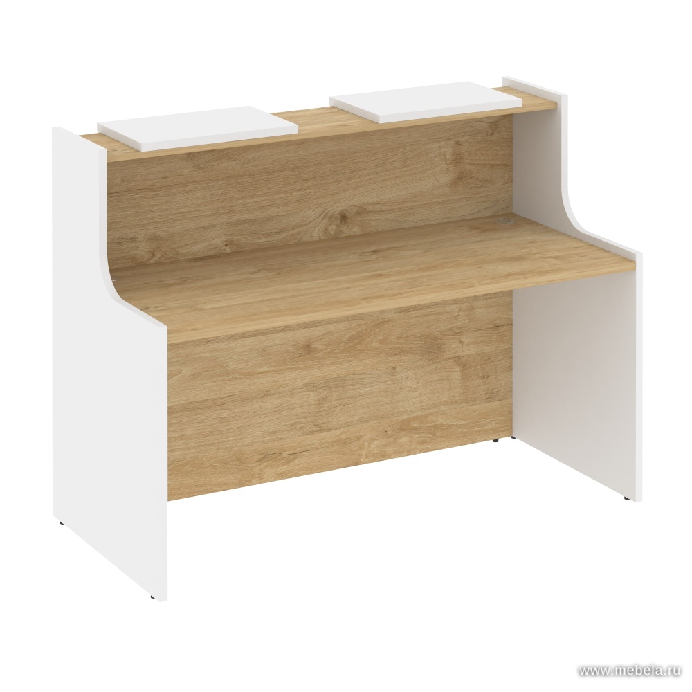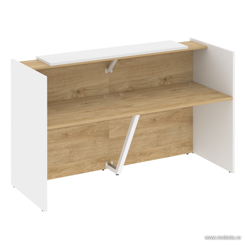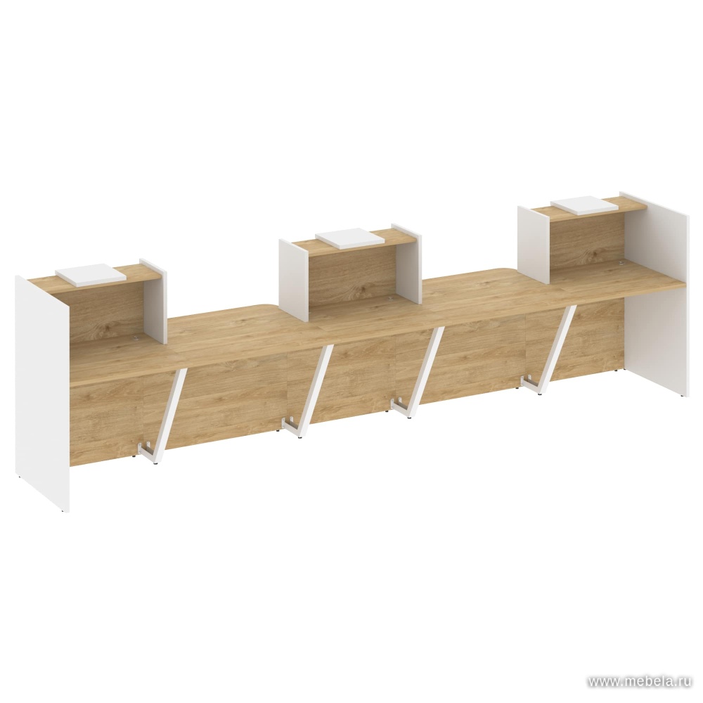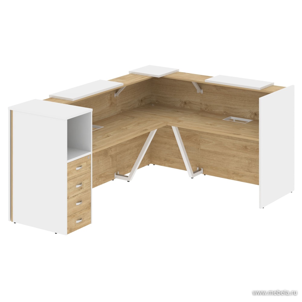 Ресепшн Onix в цвете тиквуд выполнена в эргономичном и современном стиле. Оригинальные геометрические модули и возможность объединения нескольких контрастных декоров придают стойке визуальную легкость и стиль. Модные цвета древесного декорирования в сочетании с белым цветом опор столешницы и топа освежают интерьер. ...
